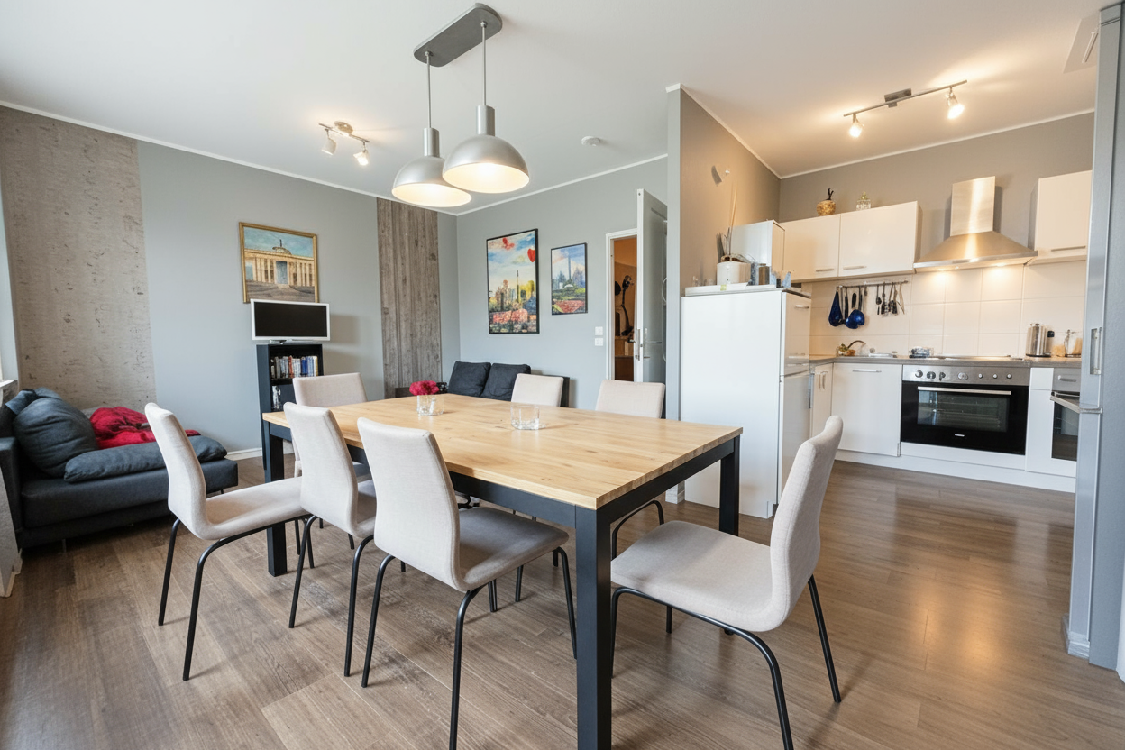 Sie betreten die Wohnung durch einen einladenden Flur, der zu den verschiedenen Räumen führt. Die große Wohnküche ist sehr geräumig und bietet genügend Platz zum gemeinsamen Kochen und Essen. Hier können Sie Ihre kulinarischen Fähigkeiten entfalten und gemütliche Abende mit Freunden verbringen. Die Wohnung verfügt über insgesamt 2 Badezimmer, wobei das Masterbadezimmer mit eine Badewanne ausgestattet ist. Hier können Sie sich nach einem langen Tag entspannen und zur Ruhe kommen. Die Wohnung lässt sich vielseitig nutzen, sei es als Familienoase oder als Paar, das den Komfort und die Flexibilität schätzt. Die zentrale Lage in Friedrichshain bietet eine ideale Anbindung an das Stadtzentrum und die umliegenden Viertel. Dank der modernen Fenster gelangt viel Tageslicht in die Räume, was eine freundliche und angenehme Atmosphäre schafft. Der Aufzug bringt Sie bequem bis zur 5. Etage, wo Sie die Ruhe und den ausgezeichneten Ausblick genießen können. Insgesamt bietet die großzügige Wohnung mit ihren 4 Zimmern genügend Platz für individuelle Lebensmodelle. Dank der funktionalen Raumaufteilung und der hochwertigen Ausstattung können Sie hier Ihr Zuhause nach Ihren Wünschen gestalten. Willkommen in Ihrem neuen Wohnparadies!