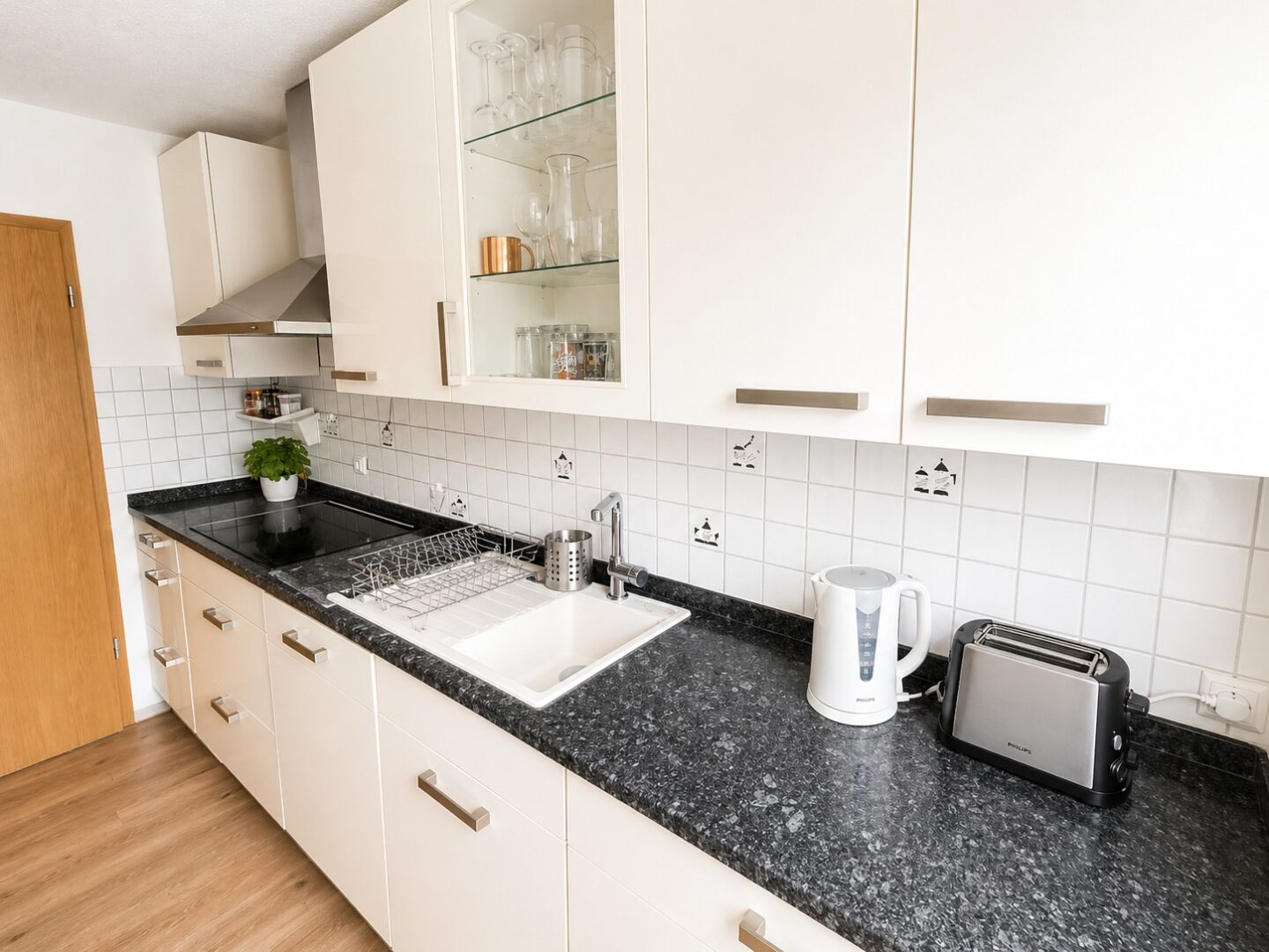 Der Wohnbereich wird durch einen Balkon ergänzt, der einen schönen Weitblick bietet und zum Entspannen einlädt. Die vorhandene Einbauküche mit hochwertiger Arbeitsplatte ist bereits im Kaufpreis enthalten und bietet viel Stauraum.