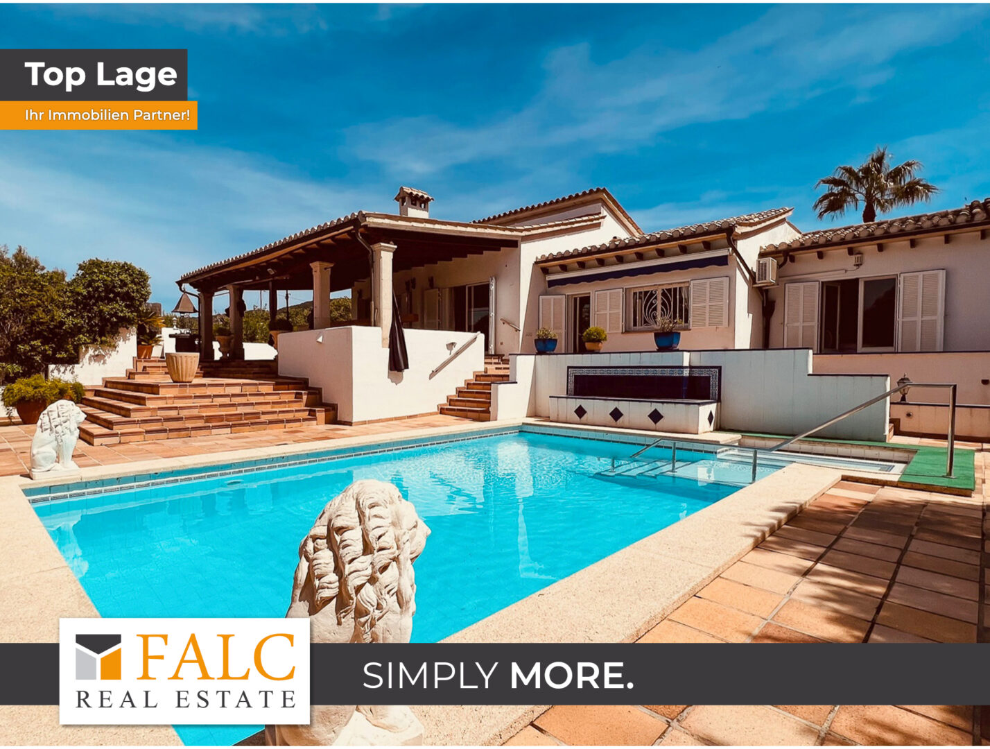 Diese charmante einstöckige Finca befindet sich nur wenige Gehminuten vom Hafen und den Geschäften des täglichem Bedarfs entfernt. Das Anwesen verfügt über ein Grundstück von ca. 1.300 m² und bietet 4 Schlafzimmer, 2 Bäder, ein Gäste-WC, eine separate Küche, ein großes Wohn-/Esszimmer und verschiedene offene und überdachte Terrasse mit Blick auf den Pool. Die Finca befindet sich in einem teilrenovierungsbedüftigen Zustand. Weitere Ausstattungsmerkmale sind: Klimaanlage w/k, Kamin, Sauna, 2 Stellplätze und 2 Garagen.