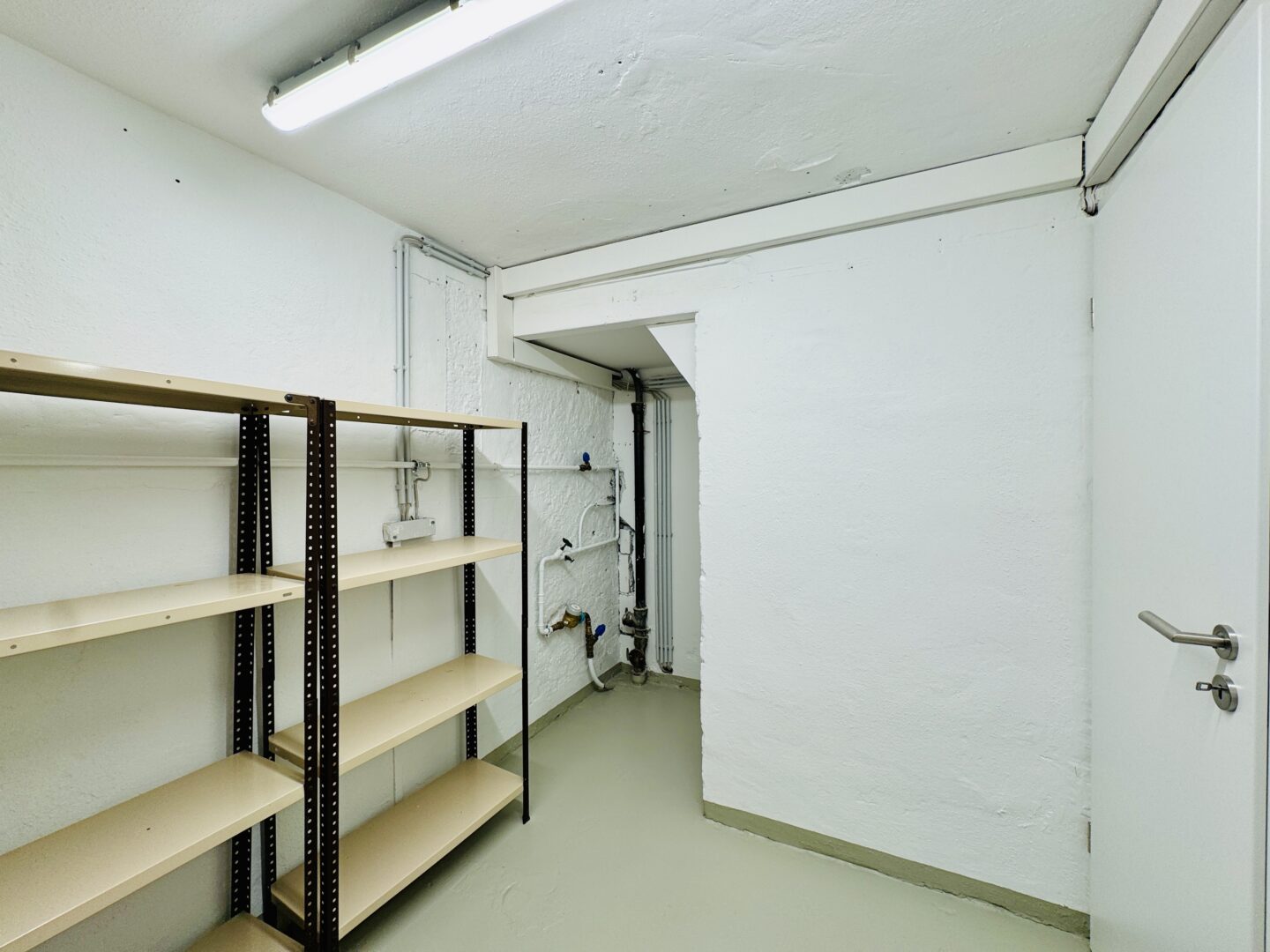 Die Küche ist funktional angebunden. Das Badezimmer verfügt über eine Badewanne; ergänzend steht ein separater Bereich mit Dusche. Zusätzlichen Stauraum bieten zwei Abstellräume.
