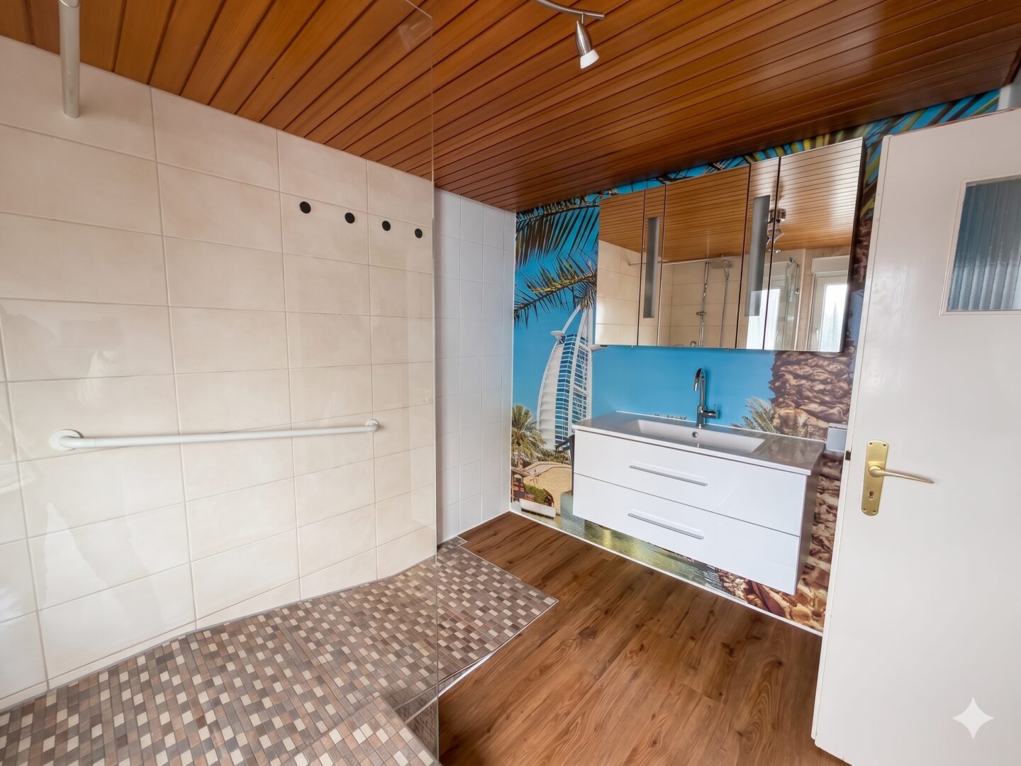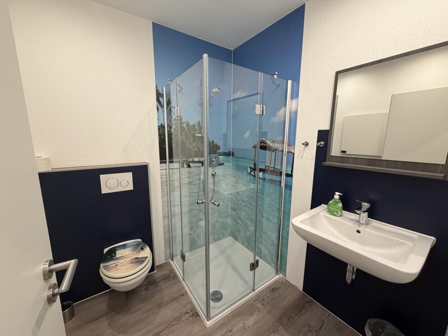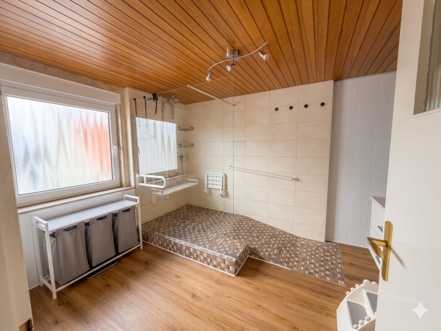 - 1.OG: Badezimmer mit großer Familiendusche, separates WC, 3 Schlafzimmer