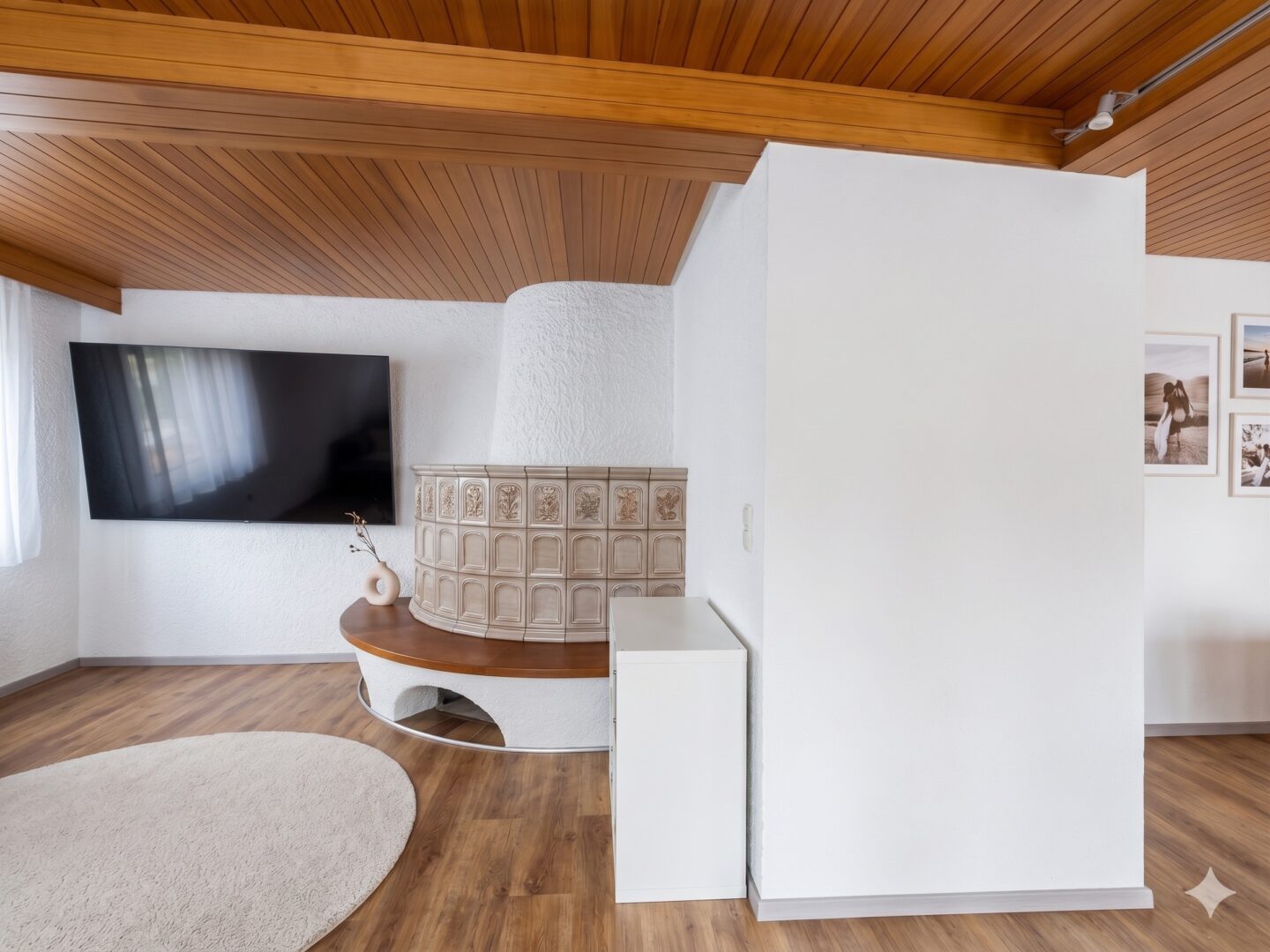 Das Einfamilienhaus besticht mit 138 m² Wohnfläche, verteilt auf 6 Zimmer über 2 Etagen. Hier verspricht der gemütliche Kachelofen in den kalten Monaten eine warme und einladende Atmosphäre.