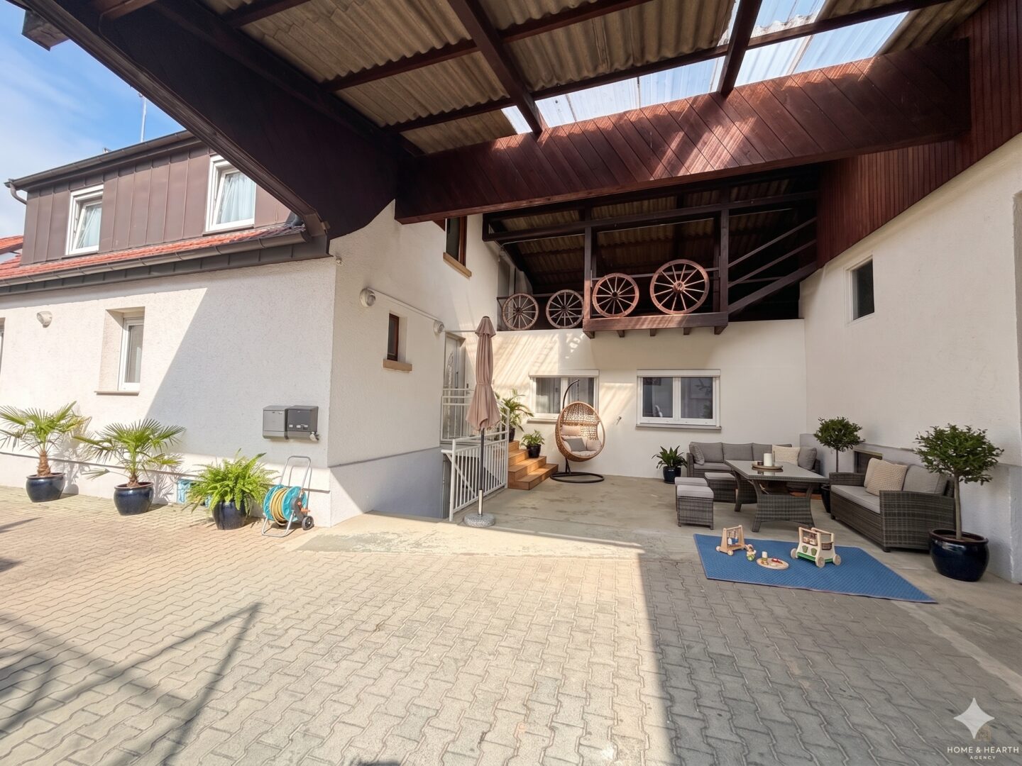Besonders hervorzuheben ist die Terrasse im Innenhof, die sich perfekt für gemeinsame Grillabende oder entspannte Stunden in der Sonne eignet. Der Balkon im 1. OG lädt zu ruhigen Abendstunden ein. Ergänzend stehen im Keller 3 weitere Räumlichkeiten zur Verfügung.