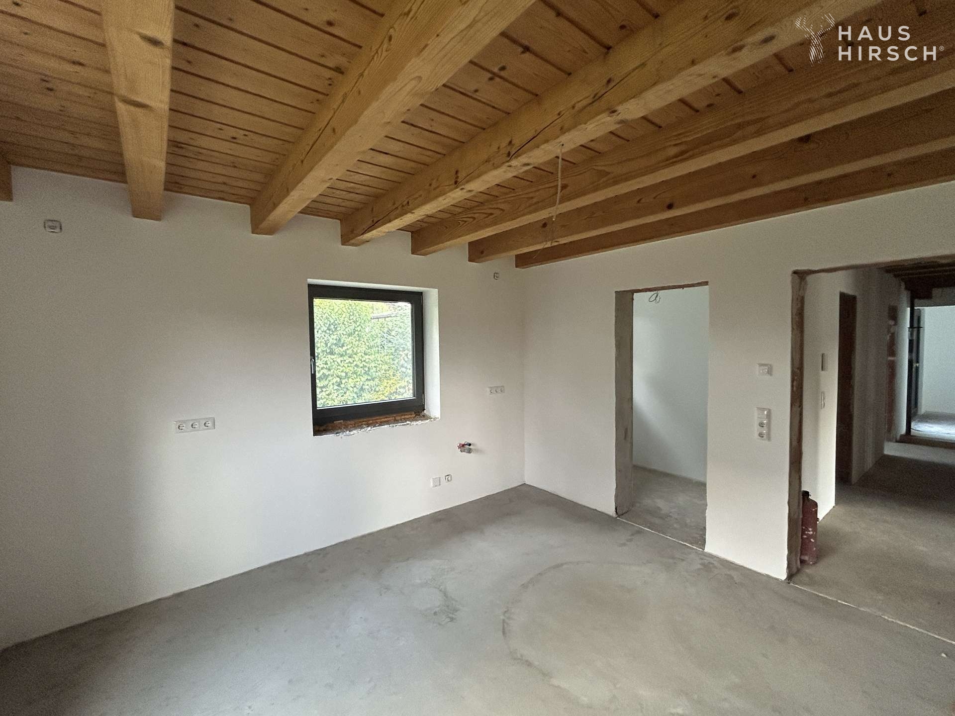 Willkommen in Ihrem neuen Zuhause! Betreten Sie dieses exklusiv modernisierte Einfamilienhaus und lassen Sie sich von seinem Charme und Charakter verzaubern. Beginnen wir mit dem beeindruckenden Schlafzimmer, das mit einem separaten Ankleidezimmer ausgestattet ist - hier finden Sie genügend Platz für all Ihre Kleidung und Accessoires. Die beiden hellen Kinderzimmer bieten Ihren Liebsten ein gemütliches und einladendes Wohnambiente. Eine offene Galerie mit herrlichem Tageslicht lädt zum Verweilen und Entspannen ein. Das exklusiv ausgestattete Badezimmer lässt keine Wünsche offen, mit Badewanne, großer begehbarer Dusche, WC und Waschtisch. Ein Abstellraum sorgt für zusätzlichen Stauraum für Ihre persönlichen Gegenstände. Der Dachboden, der über eine Einschubtreppe erreichbar ist, bietet weiteren Platz zur Lagerung. Die Garage mit angrenzendem Lagerraum ist bequem über das Haus, den Garten oder die Garage erreichbar. Der Teilunterkellerte Bereich bietet ca. 46,11 m² Stauraum, und als besonderes Highlight gibt es einen traditionellen Erdkeller, ideal zur Lagerung von Lebensmitteln. Erleben Sie die Vorteile dieses Einfamilienhauses auf einen Blick: energetisch hochwertig saniert für eine zukunftssichere und wertstabile Investition, exklusive Sanitärausstattung von renommierten Herstellern, Fußbodenheizung für angenehme Wärme, hochwertige Fliesen im Bad und Flur. Die ruhige Sackgassenlage ohne Durchgangsverkehr bietet Ihnen eine entspannte Wohnatmosphäre, während der große Garten mit unverbaubarem Ausblick zum Genießen und Entspannen einlädt. Die gute Infrastruktur ermöglicht Ihnen eine schnelle Anbindung an die B85 und B16. Willkommen in Ihrem neuen Zuhause, wo Komfort, Eleganz und Stil aufeinandertreffen.