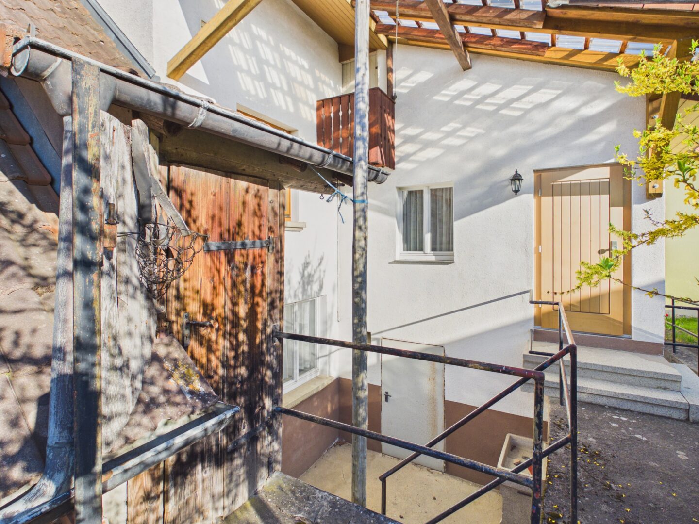 Geprägt von historischer Bausubstanz und beeindruckender Wohnfläche, erwartet Sie im Herzen von Blumberg dieses charmante Mehrfamilienhaus aus dem Jahre 1900. Mit seinen neun individuell gestalteten Räumen, verteilt auf zwei Etagen, bietet dieses gepflegte Objekt eine Wohnqualität der besonderen Art. Jedes Zimmer, ob im Erdgeschoss oder im Obergeschoss, beeindruckt durch seinen eigenen Charakter und den sichtbaren Holzbalken, die von der historischen Bauweise zeugen. Die vier Zimmer im Erdgeschoss bestechen durch ihre Großzügigkeit und Helligkeit. Hier finden Sie einen geräumigen Wohn- und Essbereich, der das Herzstück des Hauses bildet. Der Raum ist lichtdurchflutet und strahlt eine gemütliche Atmosphäre aus, die durch den Kachelofen im Wohnzimmer noch unterstrichen wird. Die Einbauküche ist voll ausgestattet, inklusive einem Holz-/Kohle-Herd und bietet genügend Platz für die Zubereitung kulinarischer Köstlichkeiten. Neben dem Wohn- und Essbereich befinden sich zwei weitere Zimmer im Erdgeschoss, die als Schlafzimmer oder Büro genutzt werden können. Ebenso findet sich hier ein Badezimmer. Im Obergeschoss des Hauses stehen Ihnen fünf weitere Zimmer zur Verfügung. Diese Räume können vielseitig genutzt werden, ob als Kinderzimmer, Gästezimmer oder als Arbeitsraum, die Möglichkeiten sind vielfältig. Ein weiterer Pluspunkt dieses Hauses ist der großzügige Ökonomieteil, der mit einer Fläche von ca. 117m² Stellfläche für 4 Fahrzeuge bietet und ebenso wie das Dachgeschoss enormes Ausbaupotential bietet. Der Garten lädt zum Entspannen ein und bietet genügend Platz für Kinder zum Spielen oder für gemeinsame Grillabende im Sommer.