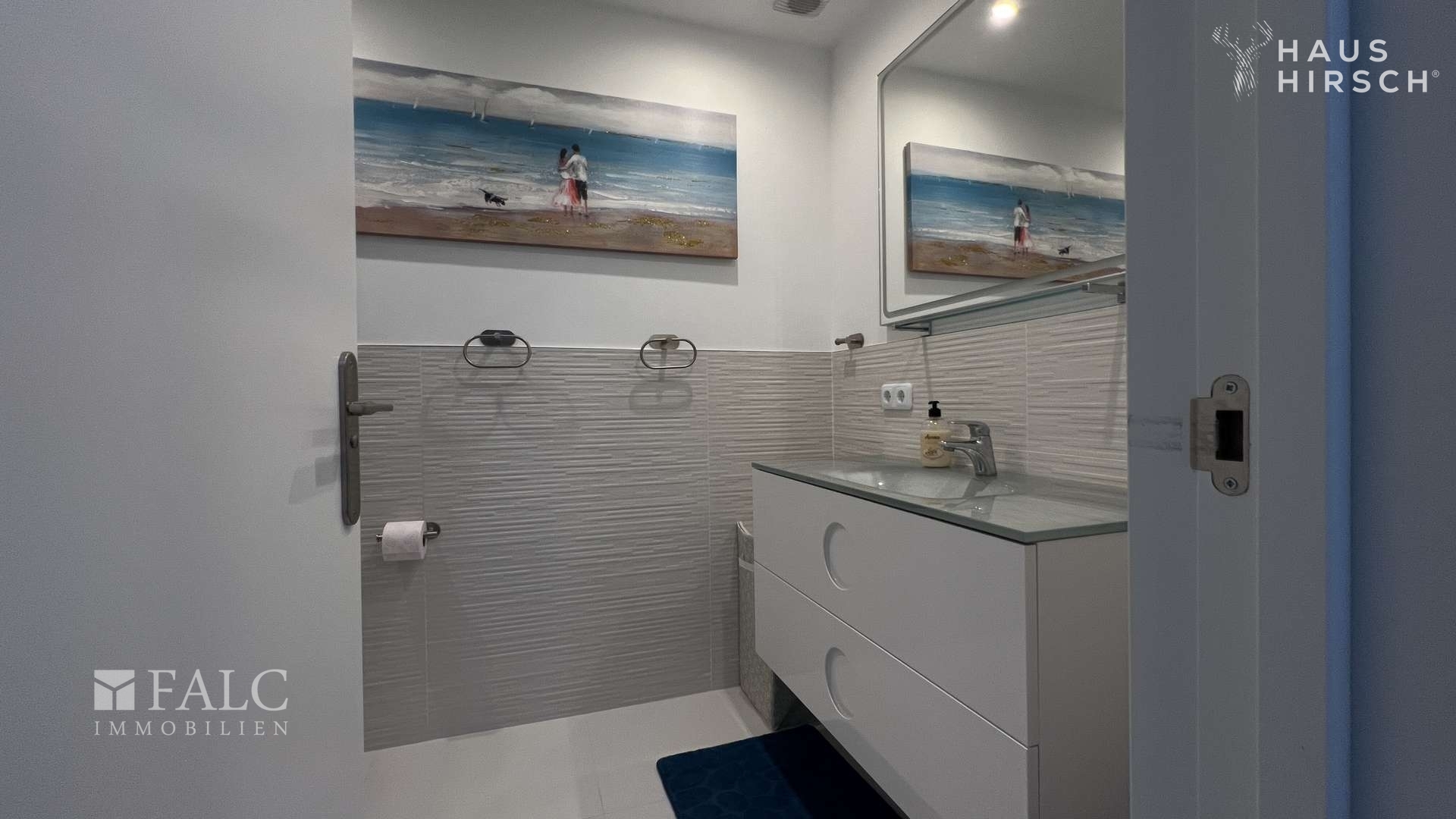 Im ersten Stock befinden sich zwei Doppelschlafzimmer mit maßgefertigten Einbauschränken sowie ein weiteres Schlafzimmer, aktuell ausgestattet mit einem Hochbett und zusätzlichem Stauraum – ideal für Kinder oder Gäste. Beide Badezimmer (eins davon en suite) wurden im Jahr 2024 vollständig renoviert und mit ebenerdigen Duschen ausgestattet. Alle Schlafzimmer verfügen über Klimageräte (teils neu installiert).