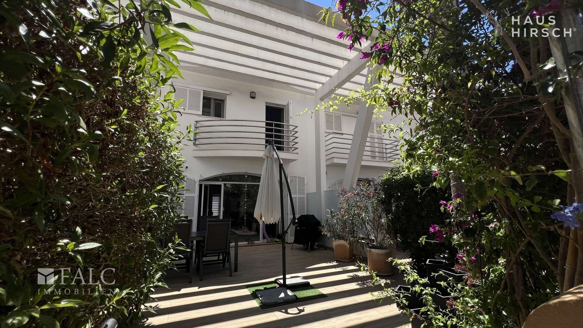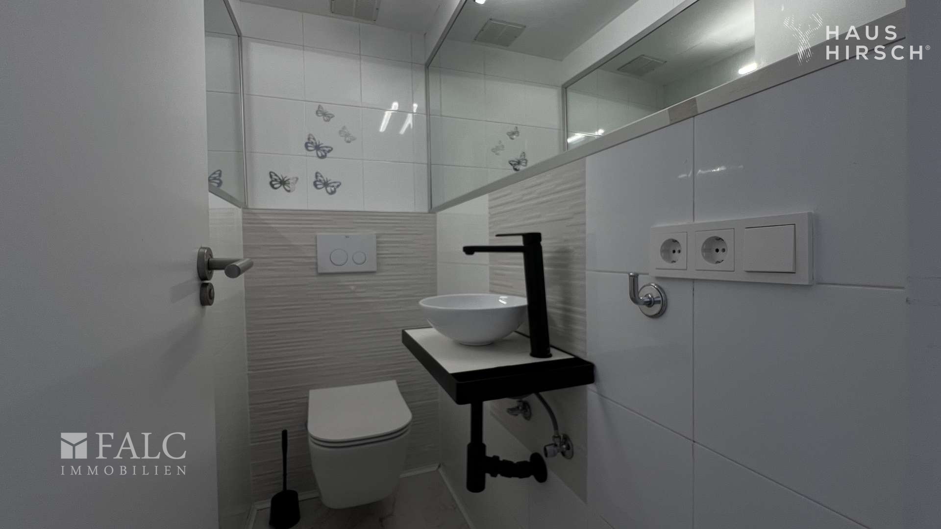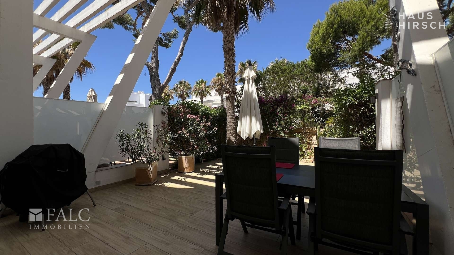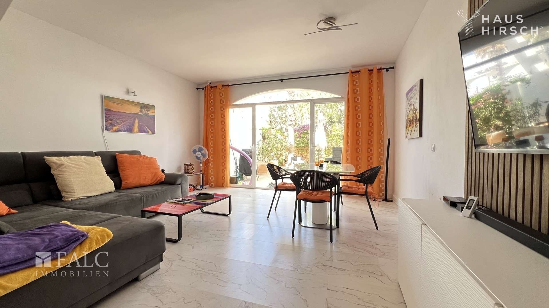 Hier empfängt Sie ein heller und großzügiger Wohn-Essbereich mit direktem Zugang zur großen Sonnenterrasse und einem Tor zum gepflegten Gemeinschaftsbereich. Die moderne, voll ausgestattete Küche wurde erst kürzlich neu eingerichtet. Ein Gäste-WC rundet das Erdgeschoss ab.