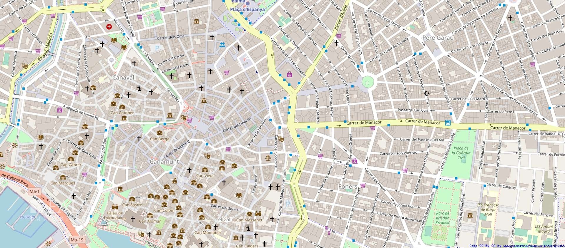 Das Viertel befindet sich in unmittelbarer Nähe zum Plaça Major, dem zentralen Platz von Palma de Mallorca. Der Palma Cathedral, auch bekannt als La Seu, ist nur etwa 10 Gehminuten entfernt und ist eines der wichtigsten Wahrzeichen von Palma de Mallorca. Der Parc de la Mar und der Passeig des Born sind ebenfalls in der Nähe und bieten eine wunderschöne Umgebung zum Spazierengehen und Entspannen.