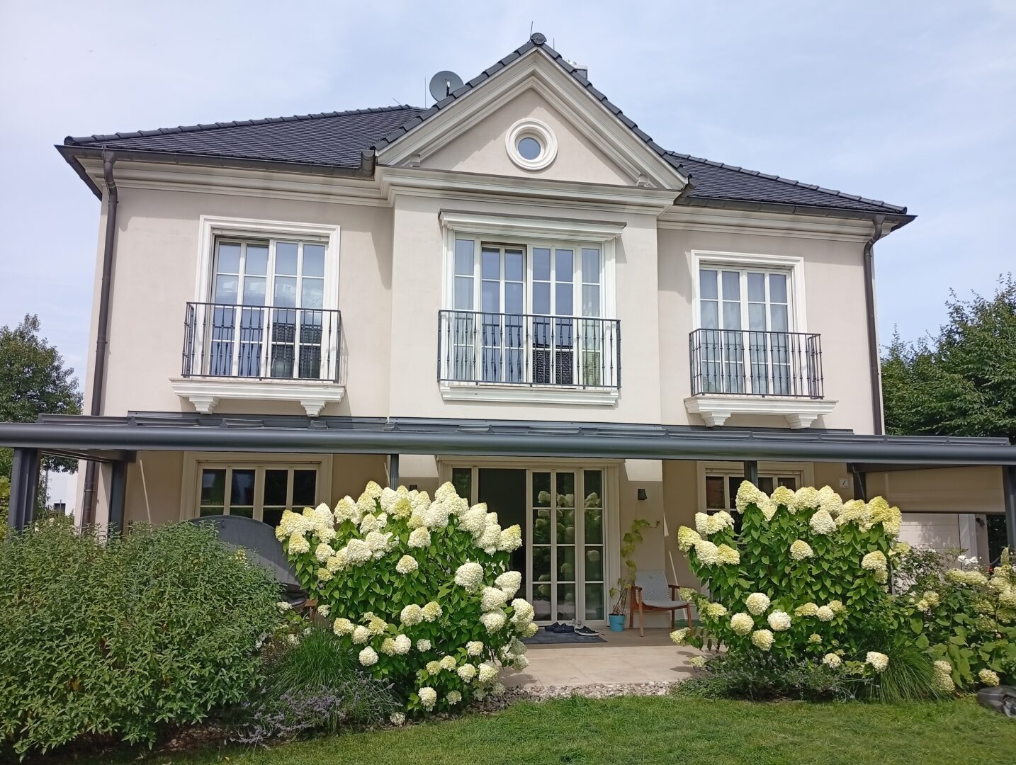 Dieses beeindruckende Haus verfügt über insgesamt 17 Zimmer, darunter 3 geräumige Schlafzimmer und 3 elegante Badezimmer. Die hochwertigen Dielen und Parkettböden verleihen den Räumen eine warme und einladende Atmosphäre.