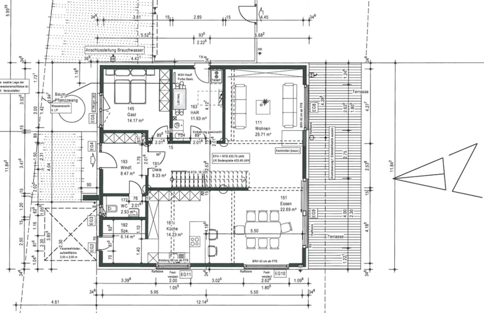 Der großzügige Wohn-Essbereich mit moderner Einbauküche, Kochinsel, hochwertigen Geräten und direktem Zugang zur Terrasse bildet das Herzstück des Hauses. Große Fensterflächen eröffnen den Blick auf den gepflegten Garten und den eingelassenen Pool mit umlaufender Holzterrasse – ein echtes Paradies für entspannte Sommertage. Ergänzt wird das Erdgeschoss durch ein Gästezimmer, Hauswirtschaftsraum, Vorratskammer und Gäste-WC mit Dusche.