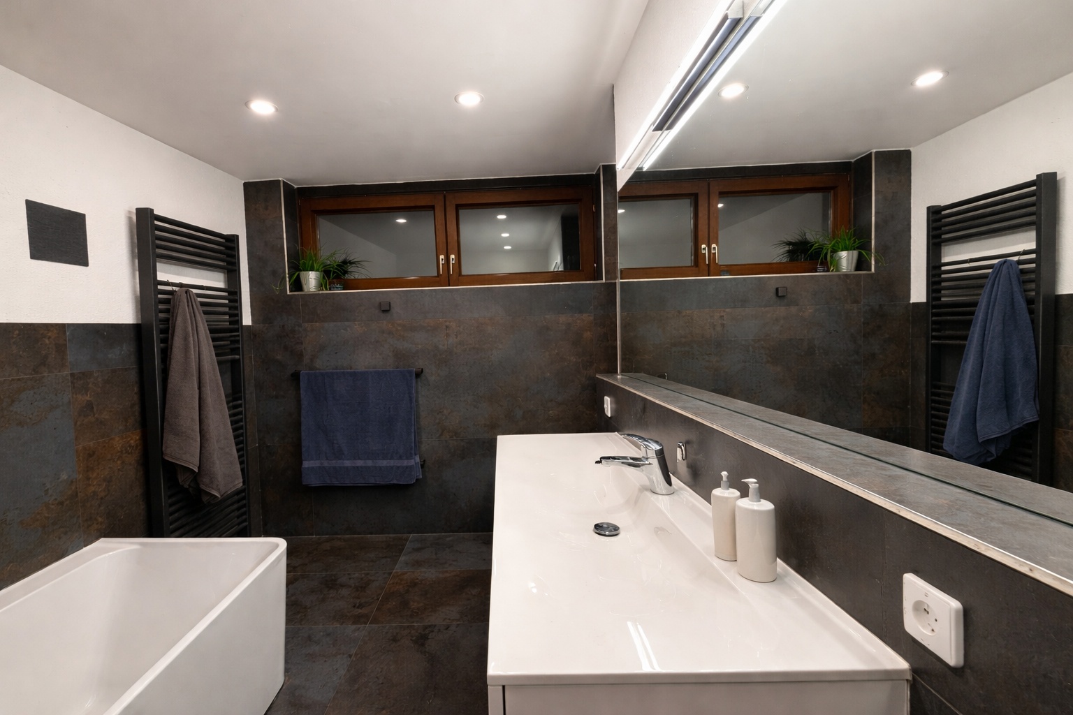 Privatsphäre pur: Das Obergeschoss beherbergt das große Eltern-Schlafzimmer mit eigenem Ankleidezimmer, Master-Bad und separatem WC. Drei weitere, teils sehr große Zimmer im Dachgeschoss bieten Platz für Kinder, Gäste oder ein Home-Office.