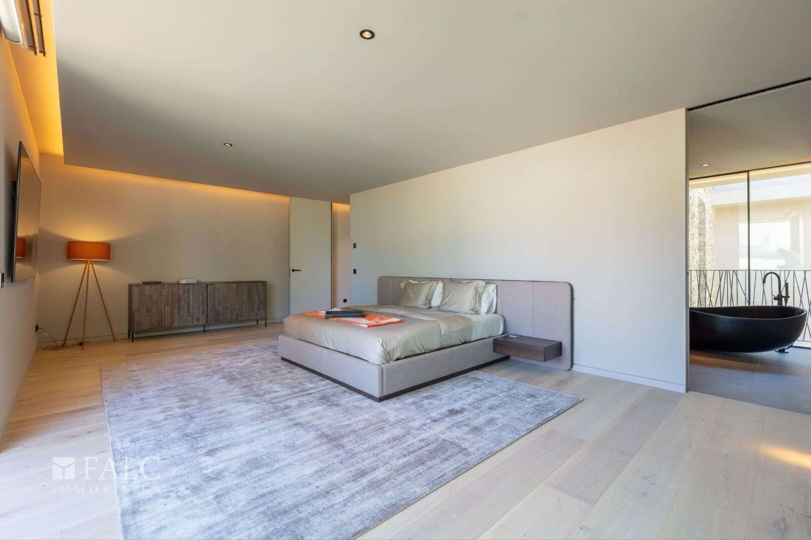 Die Villa bietet fünf luxuriöse Schlafzimmer, jedes mit eigenem Badezimmer, das sowohl für Privatsphäre als auch für Komfort sorgt. Die Hauptsuite ist ein wahres Refugium, mit Zugang zu einer privaten Terrasse und einem spa-ähnlichen Badezimmer, das mit Designer-Armaturen, einer freistehenden Badewanne und einer Regendusche ausgestattet ist – alles aus feinsten Materialien.