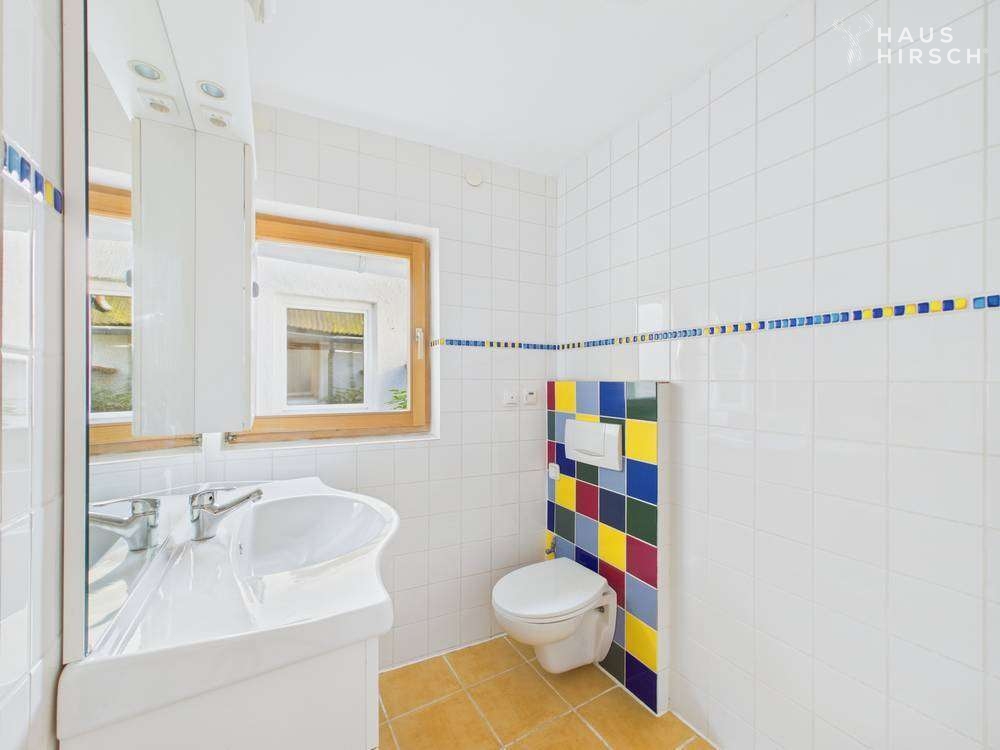 Ein modernes Tageslichtbad mit Dusche und Badewanne rundet die Etage ab und bietet einen Ort zum Entspannen.