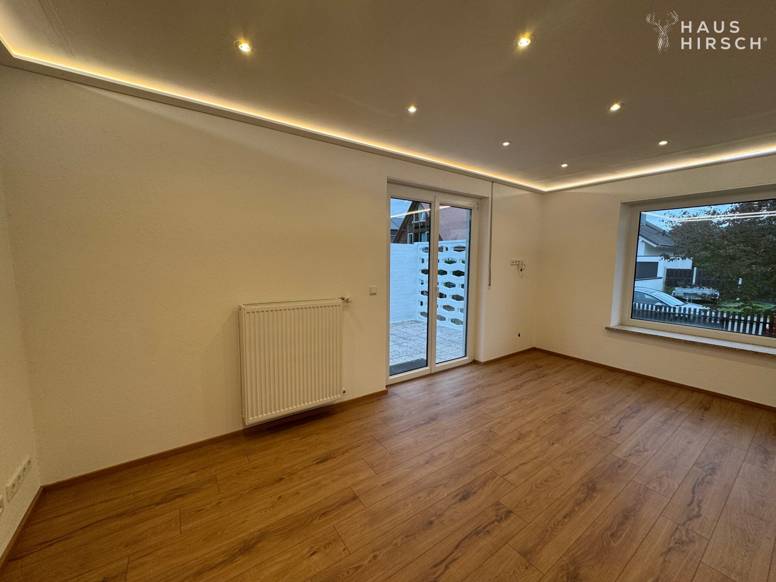Erdgeschoss: komplette Wohneinheit mit Küche, Bad mit WC, Schlafzimmer, Wohnzimmer und einem zusätzlichen kleinen Zimmer. Zudem mit teilweise überdachter Ost-Terrasse sowie einer zusätzlichen Süd-Terrasse – perfekt für sonnige Stunden zu jeder Tageszeit.