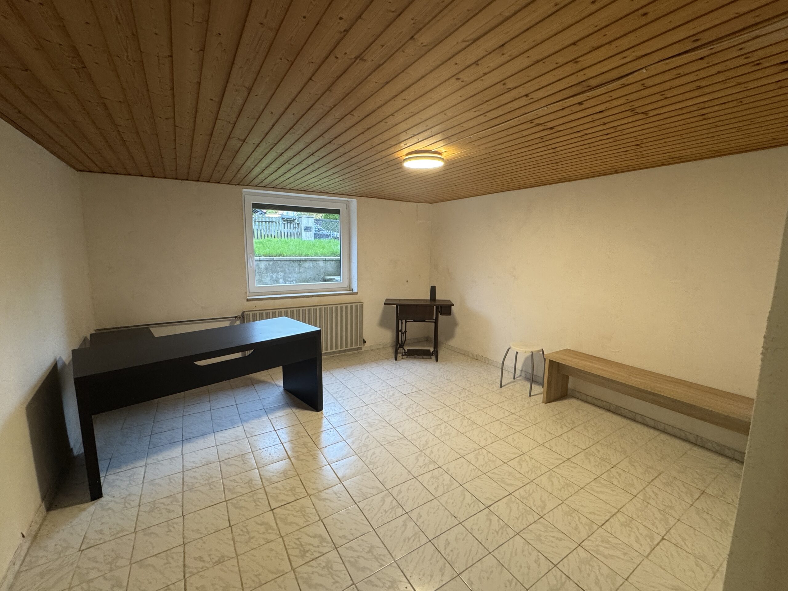 Das Gebäude ist voll unterkellert. Hier befinden sich eine Waschküche, der Heizungsraum sowie ein ca. 16 m² großer, beheizter und ausgebauter Kellerraum mit großem Fenster, der sich ideal als Arbeitszimmer nutzen lässt. Angrenzend befindet sich eine separate Toilette.