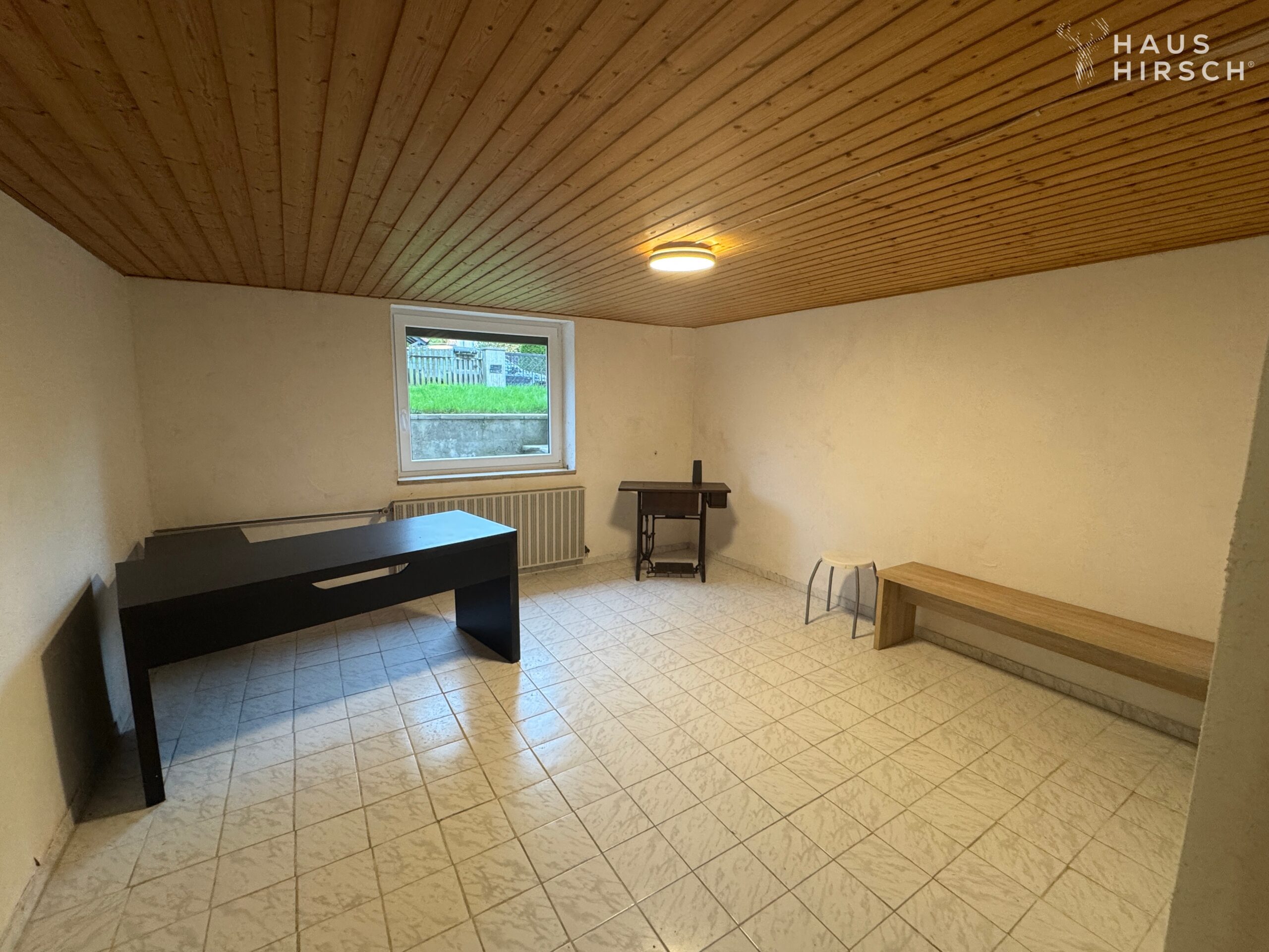 Hier befinden sich eine Waschküche, der Heizungsraum sowie ein ca. 16 m² großer, beheizter und ausgebauter Kellerraum mit großem Fenster. Dieser eignet sich hervorragend als Arbeitszimmer, Hobbyraum oder auch zur gewerblichen Nutzung – etwa für ein Kosmetikstudio, Büro oder zur Vermietung an Selbstständige. Eine angrenzende separate Toilette sorgt für zusätzlichen Komfort.