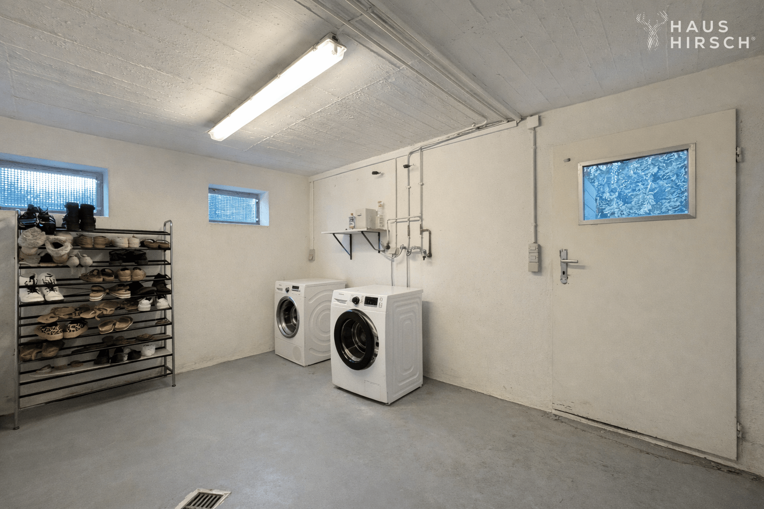 Das Haus ist voll unterkellert. Hier stehen ein Hobbyraum, ein weiteres Duschbad, ein Vorratsraum, der Heizungsraum sowie eine Waschküche mit direktem Zugang in den Garten zur Verfügung – ein praktischer Mehrwert im Alltag.