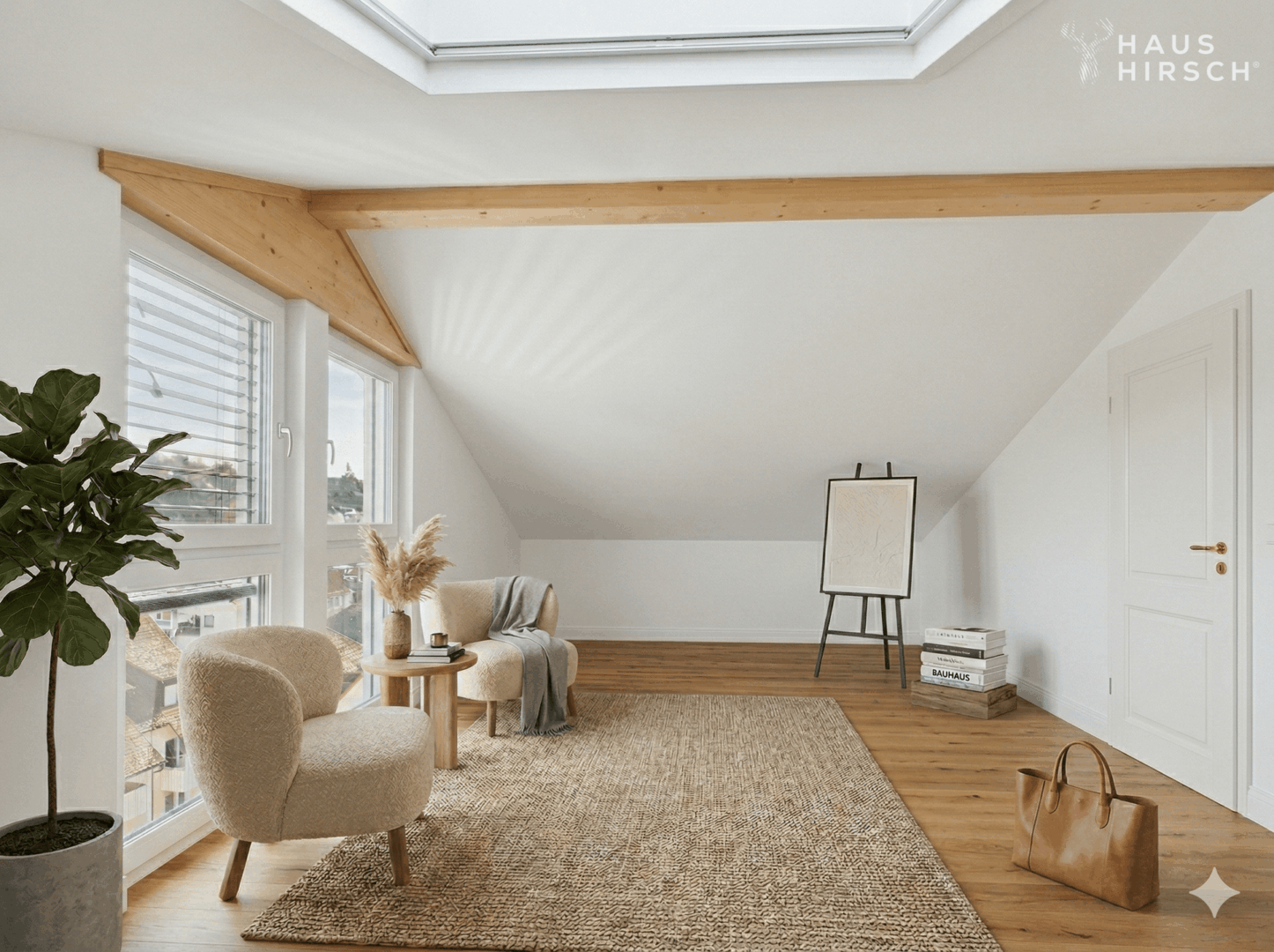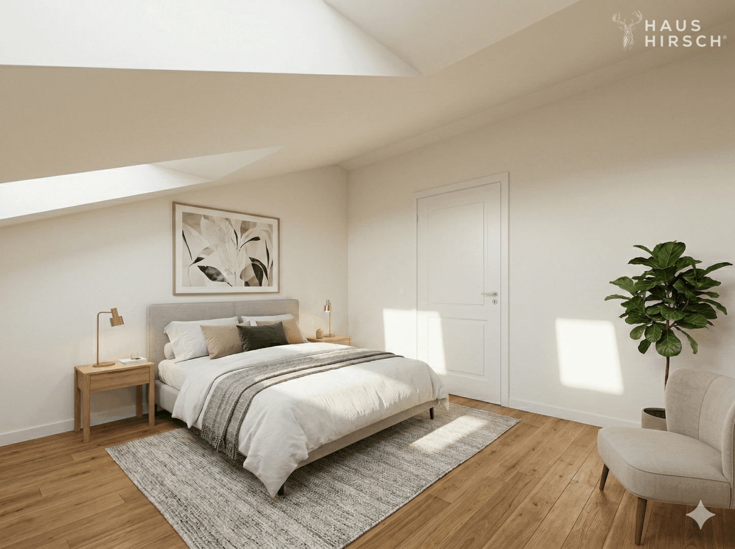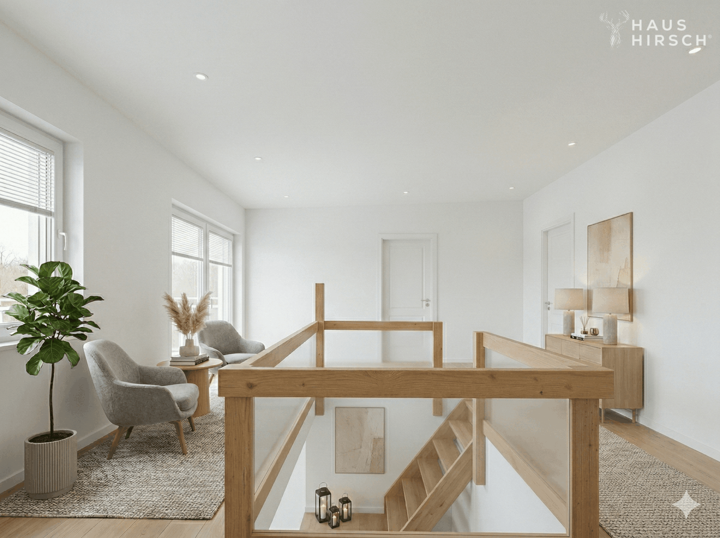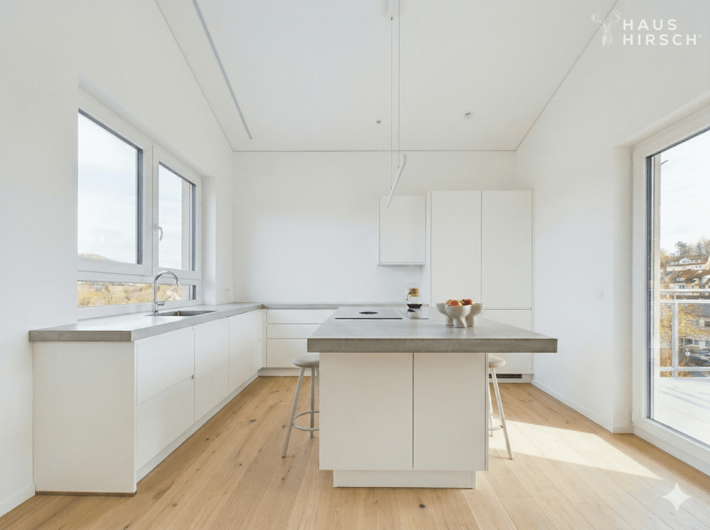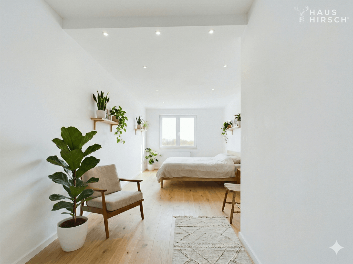 Edles Vinyl verleiht den Wohnräumen eine warme, elegante Ausstrahlung und bildet die perfekte Grundlage für ein stilvolles Interior-Konzept. Großzügige Fensterflächen sorgen für ein lichtdurchflutetes Ambiente und unterstreichen den offenen Charakter dieser besonderen Wohnung.