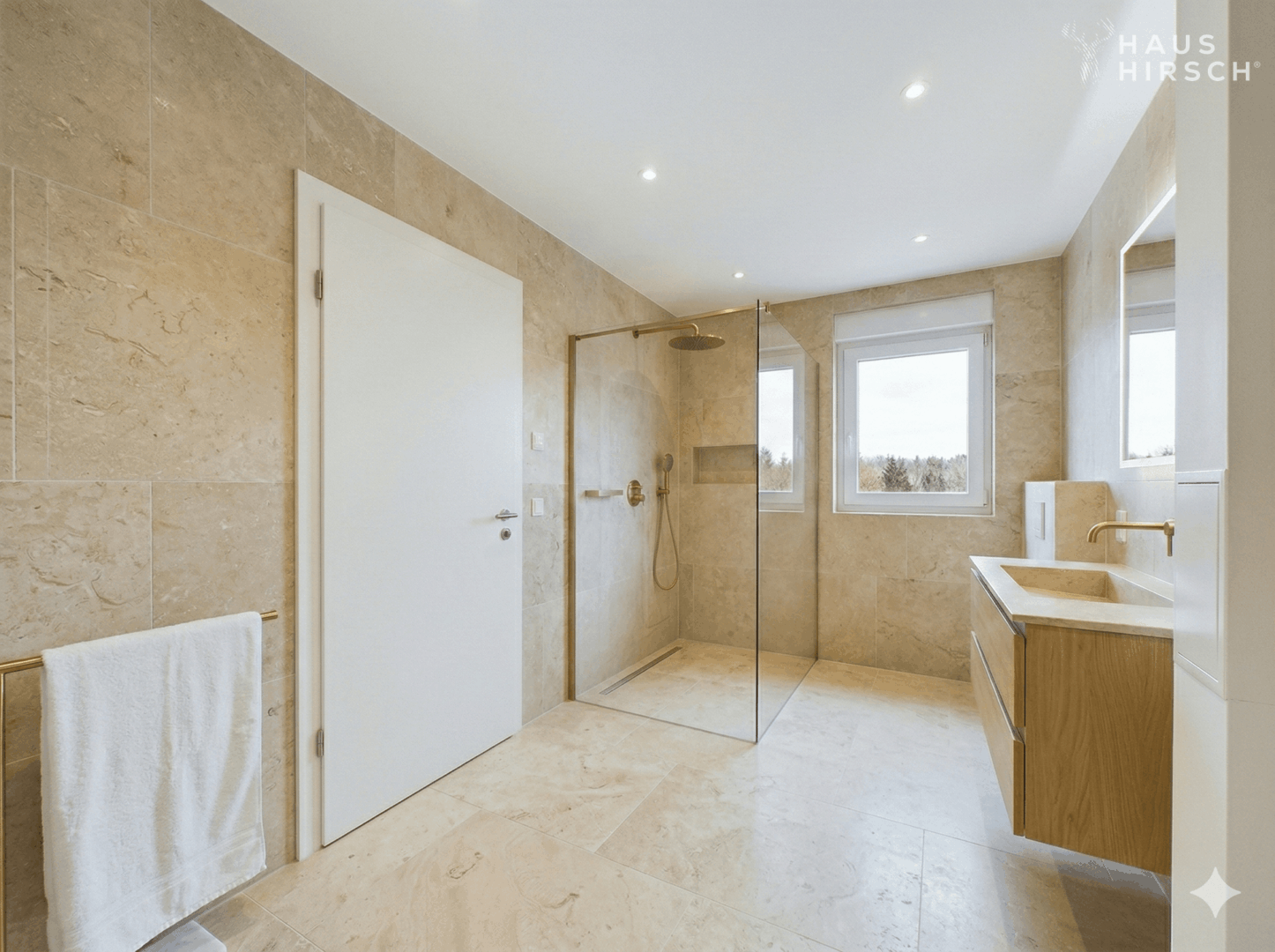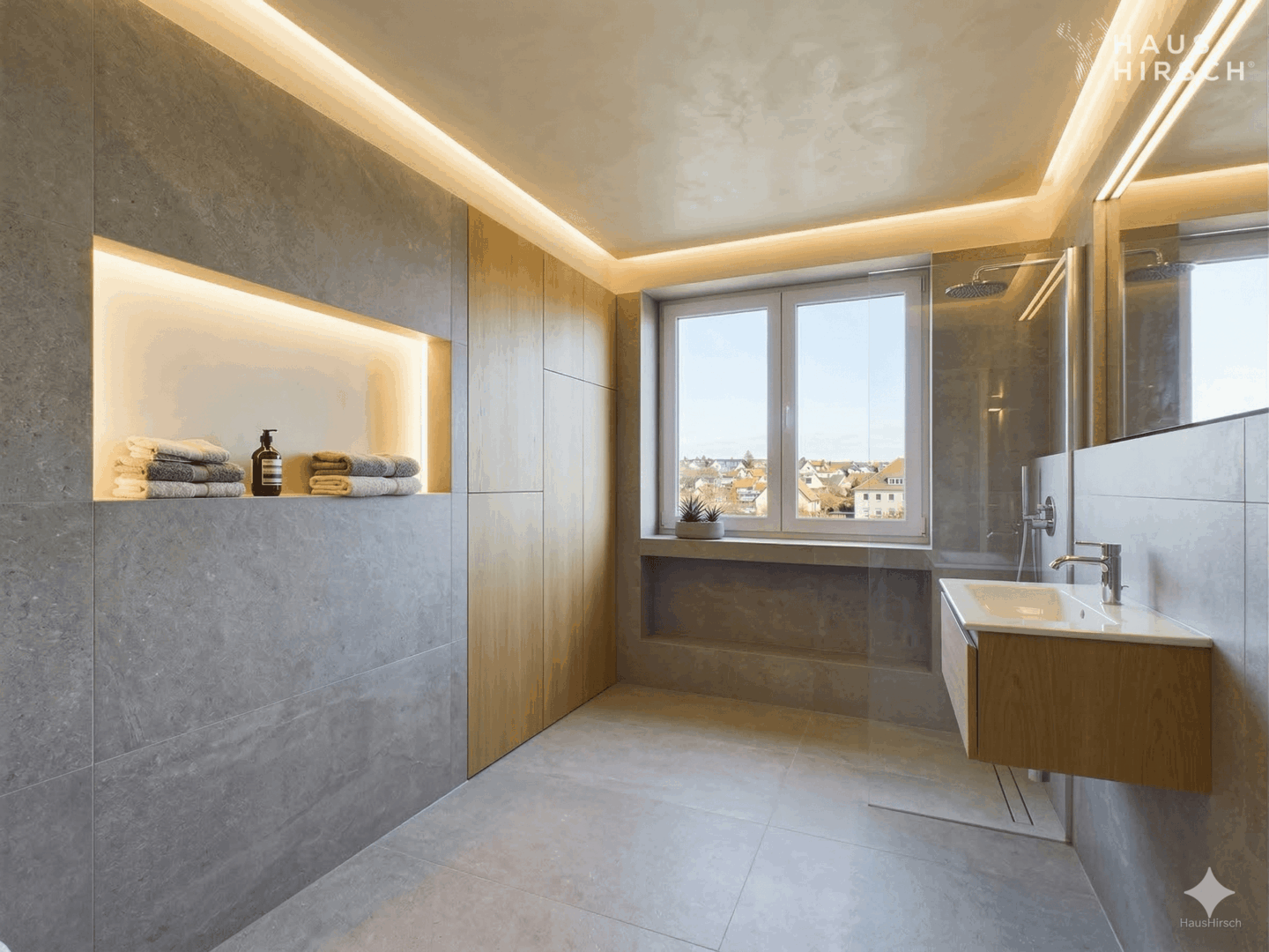 • Bodengleiche Duschen mit Markenarmaturen (z. B. Hansgrohe)