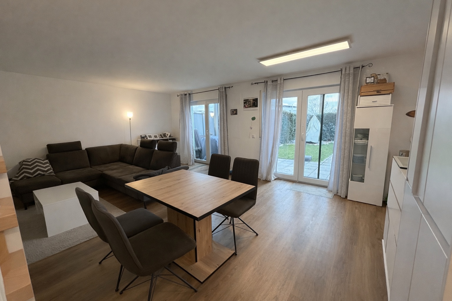 Willkommen in Ihrem neuen Zuhause - einer charmanten Maisonette-Wohnung, die Ruhe, Komfort und eine moderne Atmosphäre ausstrahlt. Diese helle und einladende Wohnung, die sich auf 2 Etagen verteilt ist, bietet auf rund 90 Quadratmetern viel Raum zum Leben, Arbeiten und Entspannen. Betreten Sie das Erdgeschoss und lassen Sie sich von der offenen Raumgestaltung und den hellen, freundlichen Räumen überraschen. Der großzügige Wohnbereich ist das Herzstück der Wohnung. Hohe Decken und große Fenster sorgen für ein lichtdurchflutetes Ambiente, während der offene Küchenbereich zum gemeinsamen Kochen und Genießen einlädt. Die moderne Einbauküche ist mit hochwertigen Geräten ausgestattet und bietet genügend Platz für kulinarische Experimente. Gleich nebenan befindet sich das gemütliche Esszimmer, das zu geselligen Mahlzeiten einlädt. Auf derselben Etage befindet sich das Gäste-WC, das durch sein modernes Design und seine hervorragende Ausstattung besticht. Nehmen Sie die Treppe in die obere Etage und entdecken Sie die beiden Schlafzimmer. Beide Räume sind großzüglich geschnitten und bieten genügend Platz für ein großes Bett und Stauraum. Das Badezimmer ist ein weiterer Höhepunkt dieser Etage. Das große Tageslichtbad enthält neben einem WC und einem Waschbecken sowohl eine Dusche als auch Badewanne und immer noch genügend Platz für Schränke und Stauraum. Auch die Waschmaschine und sogar ein Trockner haben hier Platz. Besonders hervorzuheben ist die einmalige Möglichkeit, Ihren eigenen Garten zu nutzen - ein seltenes Gut in einer Wohnung. Egal ob Sie in der Sonne entspannen, die Kinder spielen lassen oder ein Dinner unter freiem Himmel organisieren möchten - dieser Garten bietet Ihnen unzählige Möglichkeiten. Diese Maisonette-Wohnung ist mehr als nur eine Immobilie - sie ist ein Zuhause, das Ihnen und Ihrer Familie Wärme, Komfort und eine hohe Lebensqualität bietet.