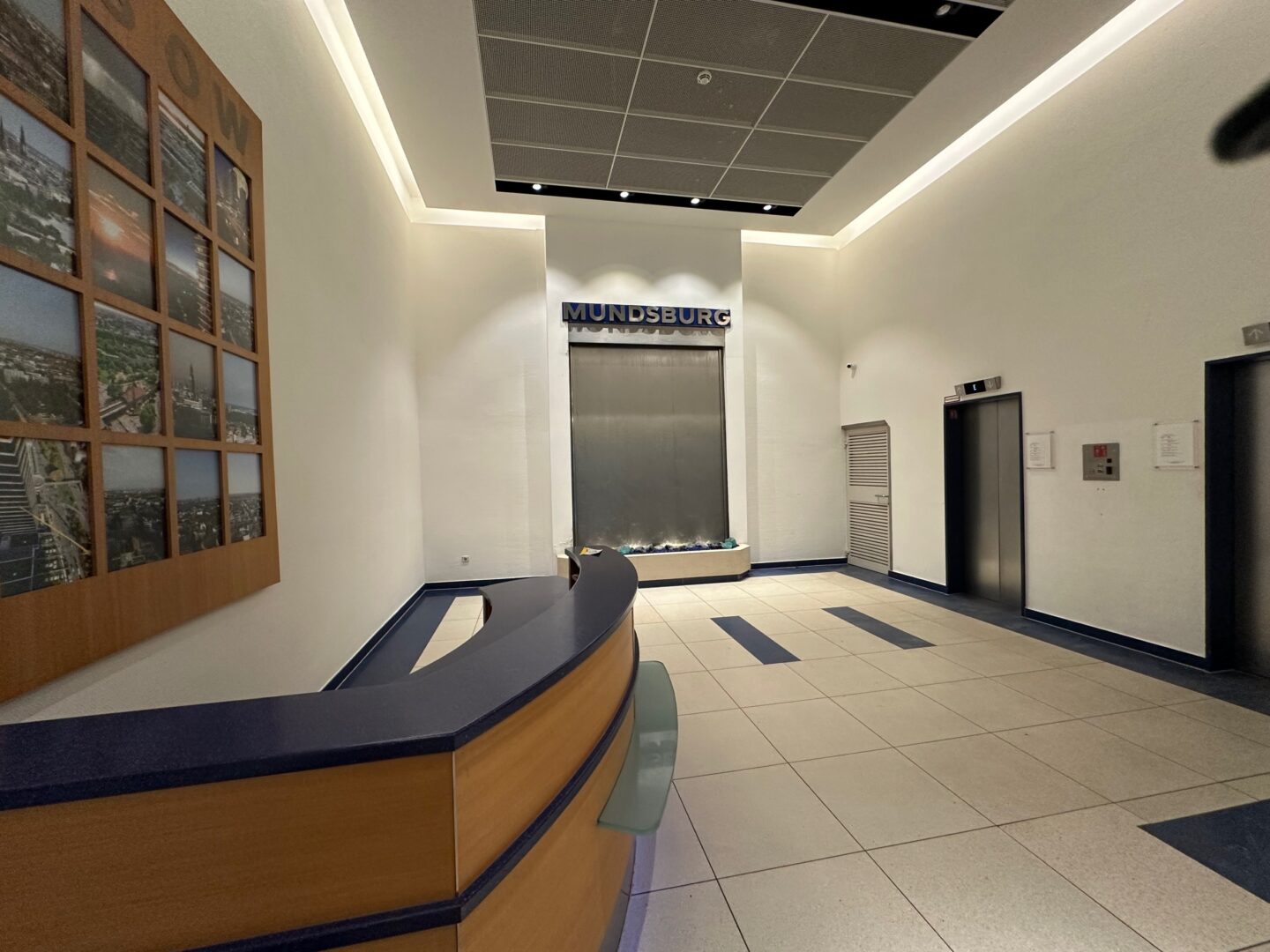 Nach umfangreichen Sanierungsmassnahmen wird sich der Mundsburg-Tower im frisch modernisierten Zustand präsentieren. Bereits erneuert wurden die beiden Express-Aufzüge, die Sie flugs in die repräsentative Eingangshalle des Gebäudes bringen, wo Sie und Ihre Besucher vom hauseigenen Concierge-Service in Empfang genommen werden.