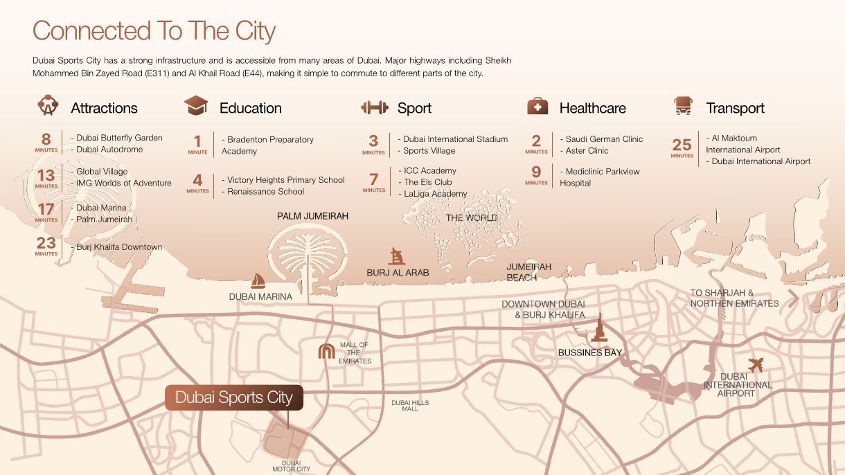 Erleben Sie das dynamische Leben in Dubai Sports City und profitieren Sie von einer hochwertigen Wohnlage, die Ihnen alles bietet, was Sie für ein entspanntes und aktives Leben brauchen.