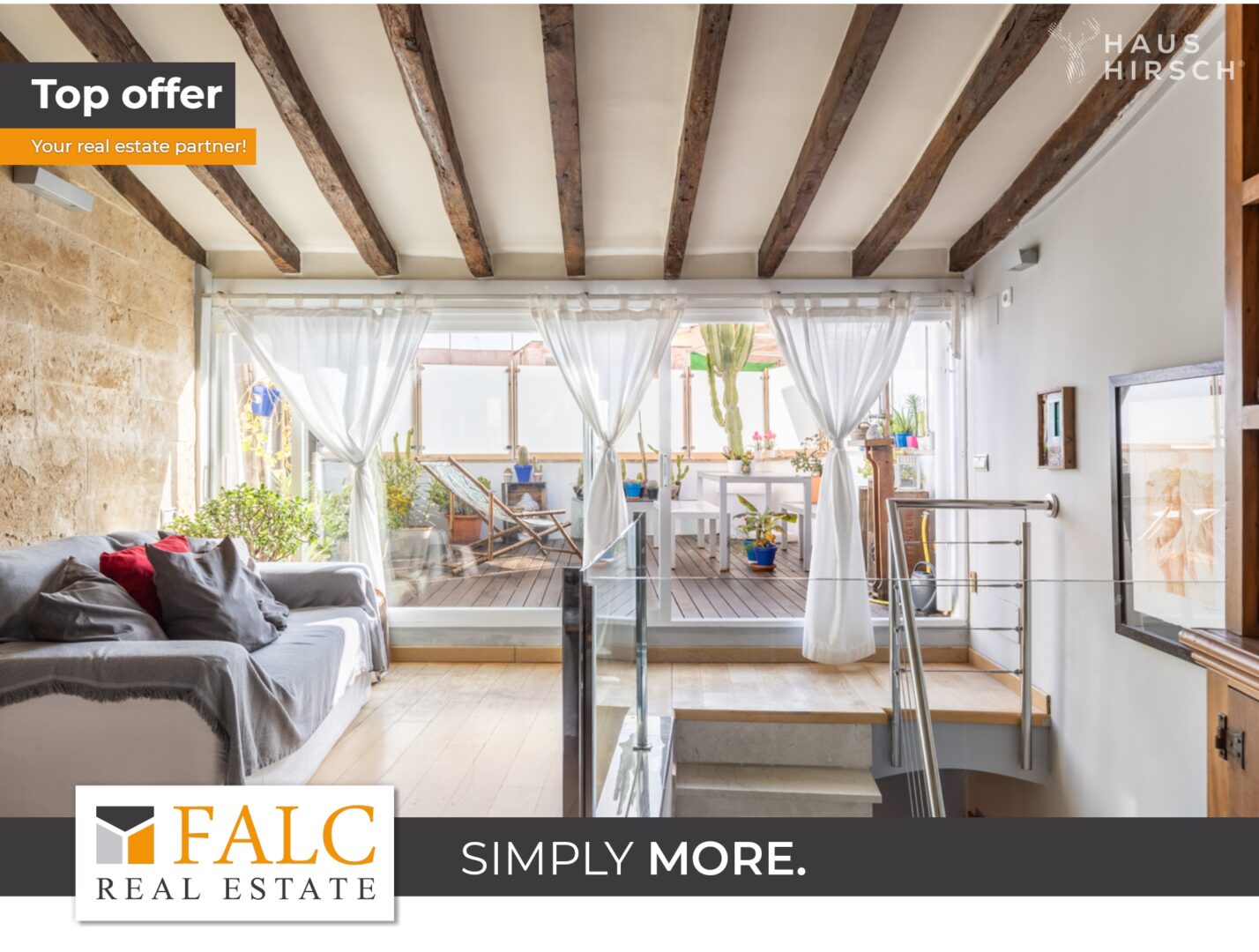Dieses außergewöhnliche Duplex-Penthouse befindet sich im Herzen von Palma, nur wenige Schritte von der Altstadt entfernt, und liegt in einem Gebäude mit lediglich drei Wohneinheiten. Auf zwei großzügigen Ebenen erstreckt sich die Wohnfläche von ca. 129 m², ergänzt durch eine sonnige, nach Süden ausgerichtete Terrasse von etwa 21 m² – ein perfekter Rückzugsort mitten im lebendigen Stadtzentrum.