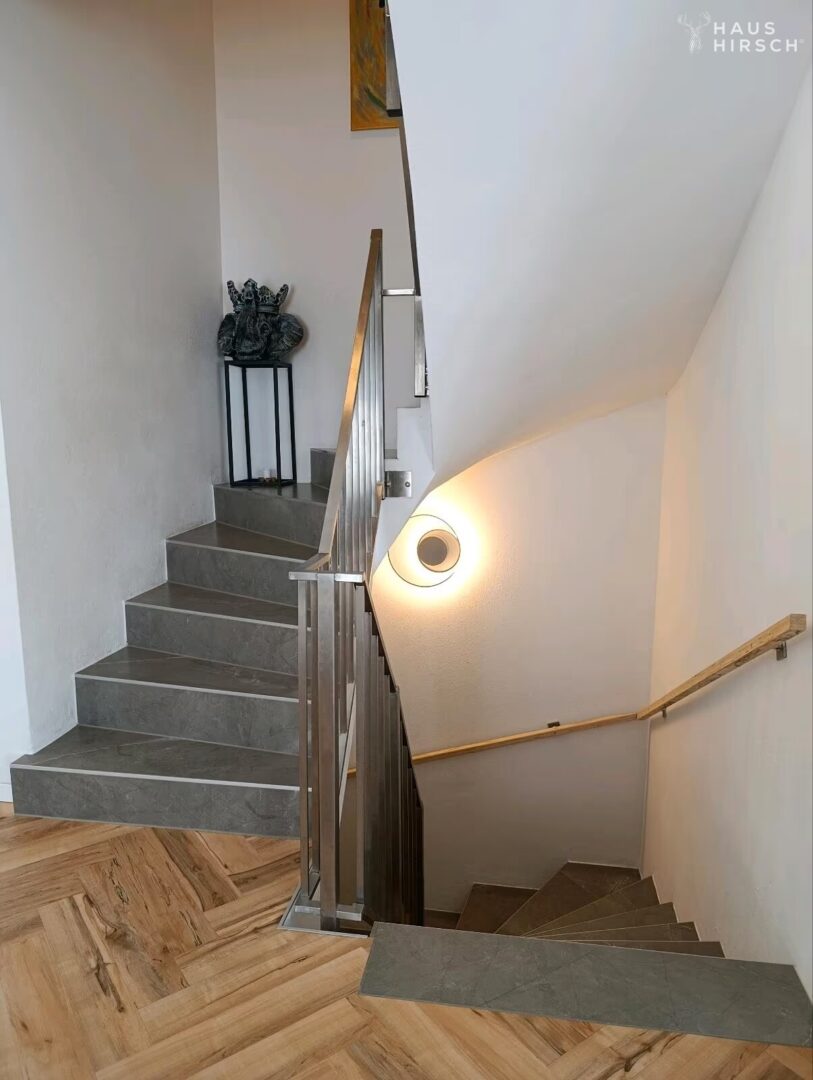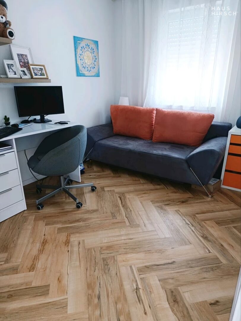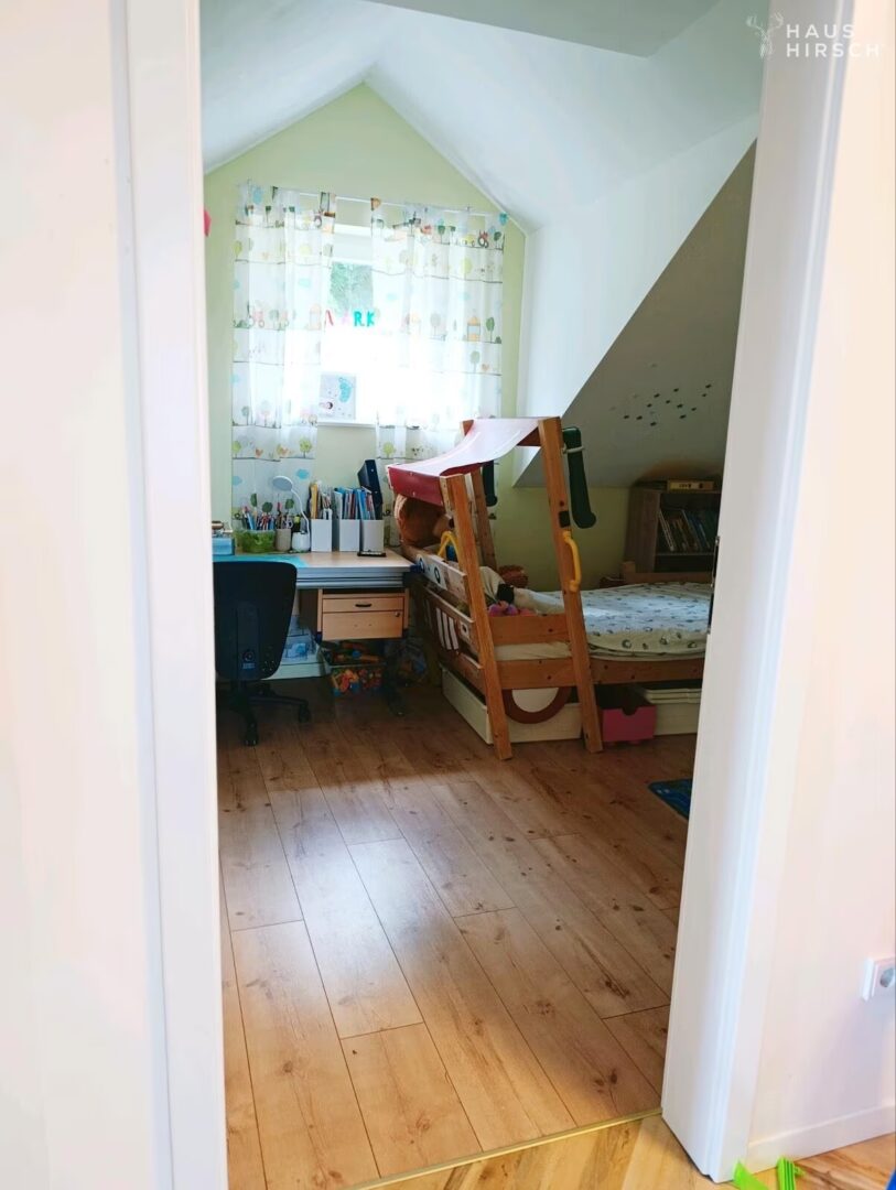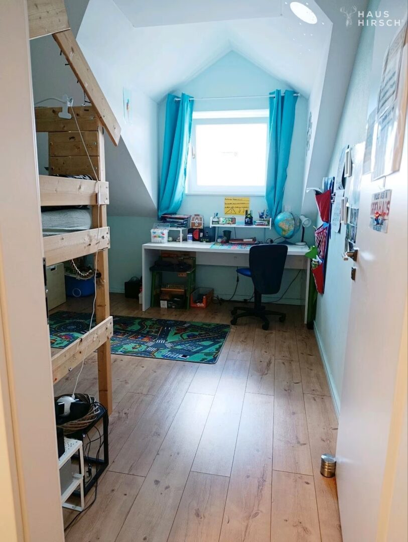 Die praktische Aufteilung über drei Etagen ermöglicht eine flexible Nutzung: Im Erdgeschoss befindet sich das Miet-Apartment mit kompletter Ausstattung, im Obergeschoss ein großes Wohnzimmer mit Dampfkamin und offener Küche, sowie ein Büroraum und Abstellraum. Im Dachgeschoss erwarten Sie drei Schlafzimmer, ein modernes Bad und zusätzlicher Stauraum unter dem Dach.