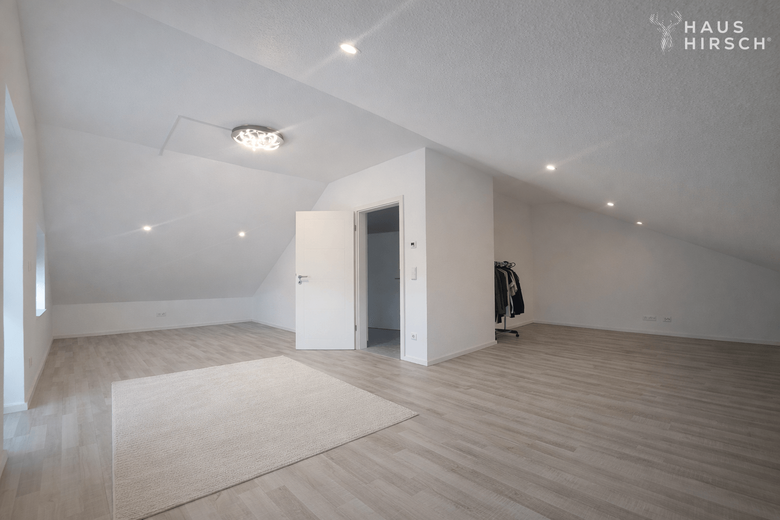 Ein zusätzlicher Mehrwert ist das ausgebaute Dachgeschoss, das nicht in der offiziellen Wohnfläche enthalten ist. Dieser Bereich bietet vielfältige Nutzungsmöglichkeiten – ob als Hobbyraum, Homeoffice, Fitnessbereich oder eigenständiger Rückzugsort für Teenager – und macht das Haus besonders flexibel für unterschiedliche Lebensphasen.