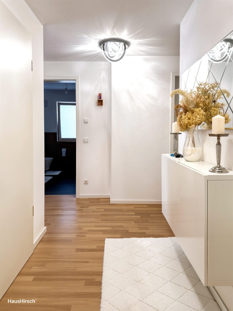 Beim Betreten fällt sofort die hochwertige Ausstattung ins Auge: Fußbodenheizung in allen Räumen, elegante Parkett- und Fliesenböden, dreifach verglaste Fenster sowie eine dezentrale Wohnraumbelüftung mit Wärmerückgewinnung, die stets für ein angenehmes Raumklima sorgt.