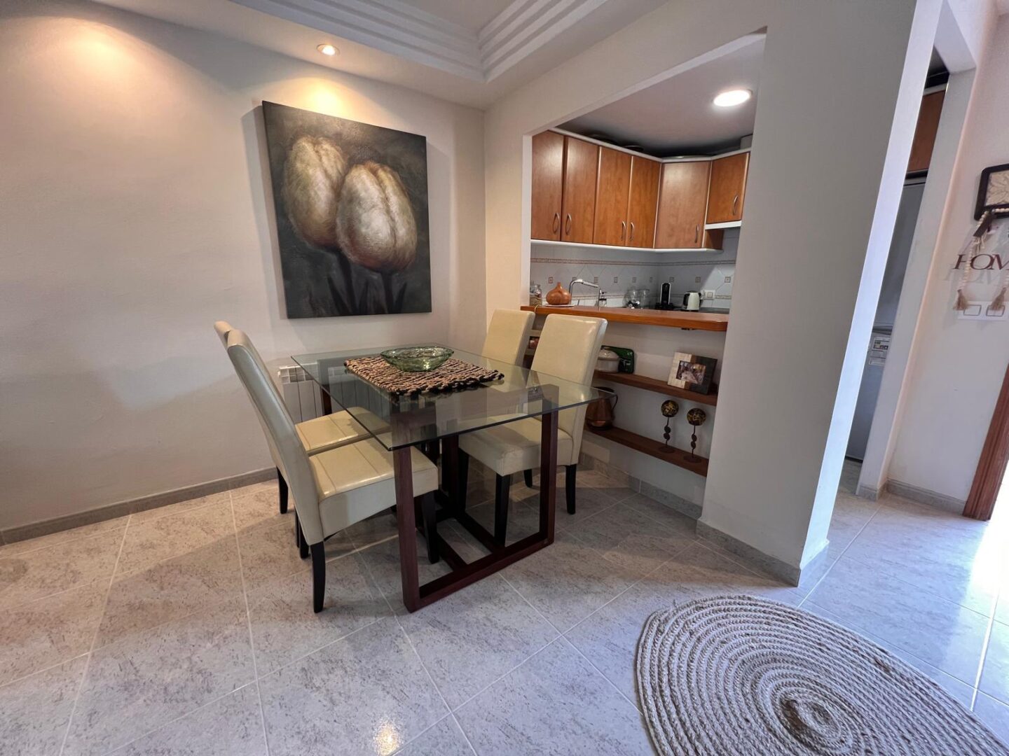 Die Wohnung befindet sich in einer gepflegten Apartmentanlage in einer ruhigen und sehr gehobenen Gegend, Sa Torre in Porto Cristo. Die schöne Einbauküche ist gut ausgestattet und lädt zum Kochen und Genießen ein. Nur 50 Meter entfernt befindet sich das Meer, wo Sie ausgiebige Spaziergänge entlang der Küste machen können und es auch Meerzugänge gibt.