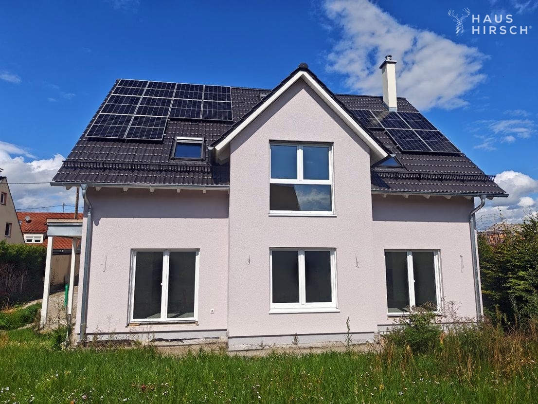 Ein weiterer Blickfang ist der große Wohnbalkon mit Südwest-Ausrichtung, der den Wohnbereich ins Freie erweitert. Das großzügige Grundstück mit ca. 941 m² bietet zusätzliche Gestaltungsmöglichkeiten für Garten und Außenflächen. Dank erstklassiger Energietechnik erfüllt das Haus höchste Standards: Eine Luft-Wasser-Wärmepumpe, kombiniert mit Photovoltaikanlage und kontrollierter Wohnraumlüftung mit Kühlfunktion, sorgt für ein angenehmes Raumklima und niedrigste Verbrauchswerte.