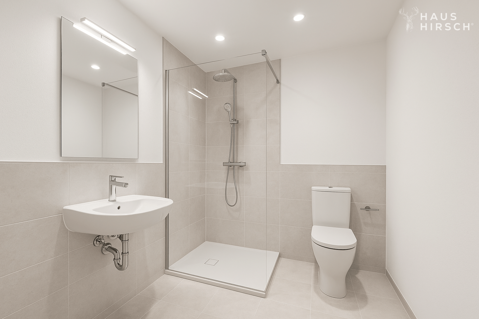Ein optionaler Tiefgaragenstellplatz kann zusätzlich erworben werden. Die Ausstattung der Wohnung lässt keine Wünsche offen: Wählen Sie zwischen hochwertigem Vinyl oder edlen Fliesen als Bodenbeläge, die Wände werden weiß mit Malerflies tapeziert, optional können Deckenspots installiert werden. Die Bäder sind in hellen Tönen angesetzt, großformatige Fliesen bis ca. 1,60 Meter Höhe und geräumige Nasszellen runden das Angebot ab. Die modernen Badezimmer bieten entweder eine Walk-In Dusche oder eine Badewanne, eine Toilette, ein Waschbecken und Platz für eine Waschmaschine.