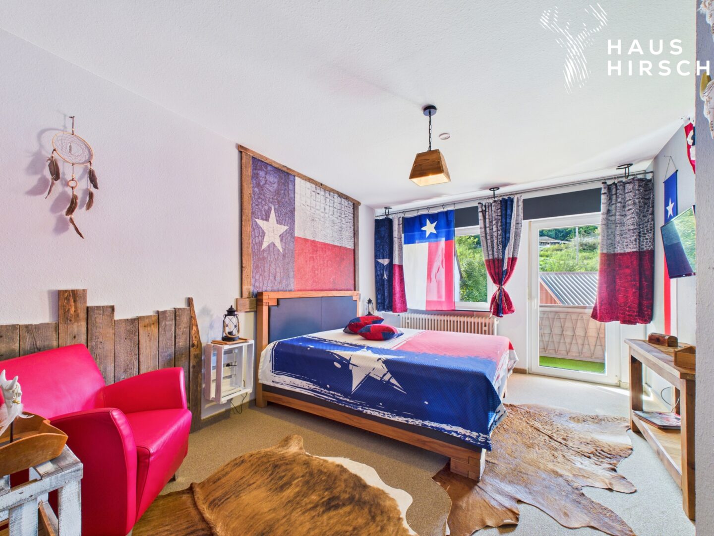 Jedes einzelne Zimmer wurde mit großer Sorgfalt und einem Auge fürs Detail eingerichtet. Hochwertige Materialien, stimmige Farbkonzepte und authentische Designelemente im Western-Stil schaffen eine warme, einladende Umgebung, in der sich Gäste sofort wohlfühlen. Das durchgängige Western-Thema verleiht dem gesamten Haus einen unverwechselbaren Charakter und macht jeden Aufenthalt zu einem besonderen Erlebnis.
