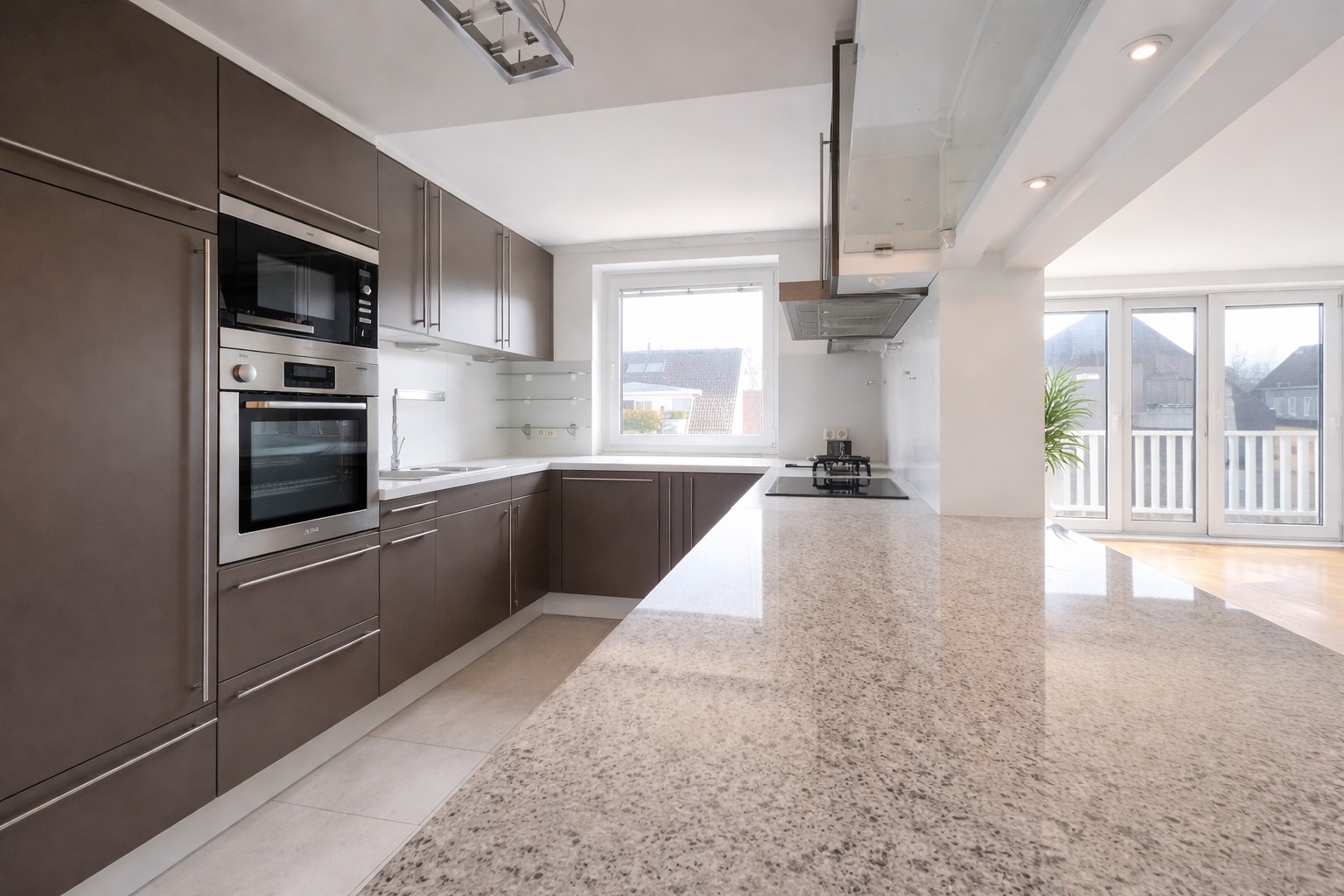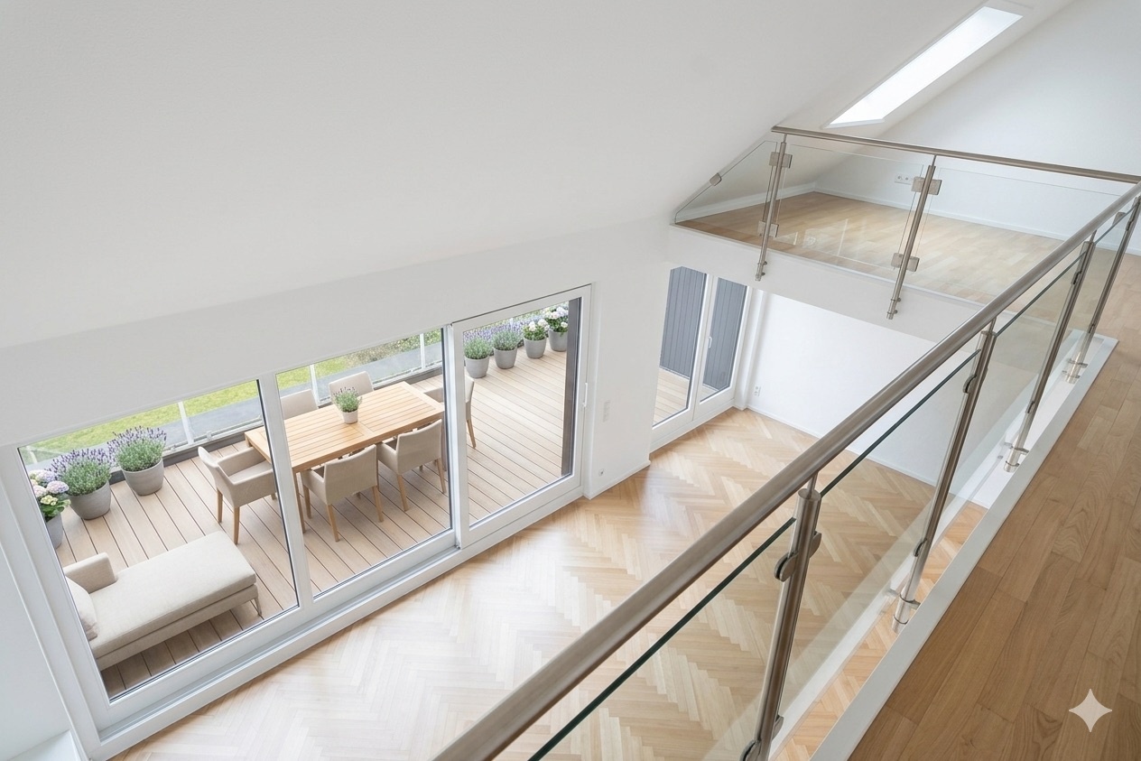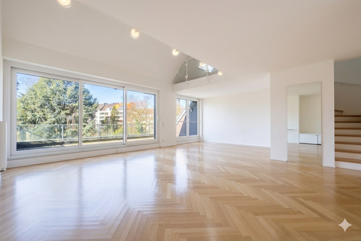 Willkommen in einer außergewöhnlichen Maisonette-Wohnung, die Großzügigkeit, Licht und architektonische Eleganz auf höchstem Niveau vereint. Diese exklusive Zweietagen-Galeriewohnung erstreckt sich über die beiden obersten Etagen und bietet mit ca. 194 m² Wohnfläche ein einzigartiges Wohngefühl.