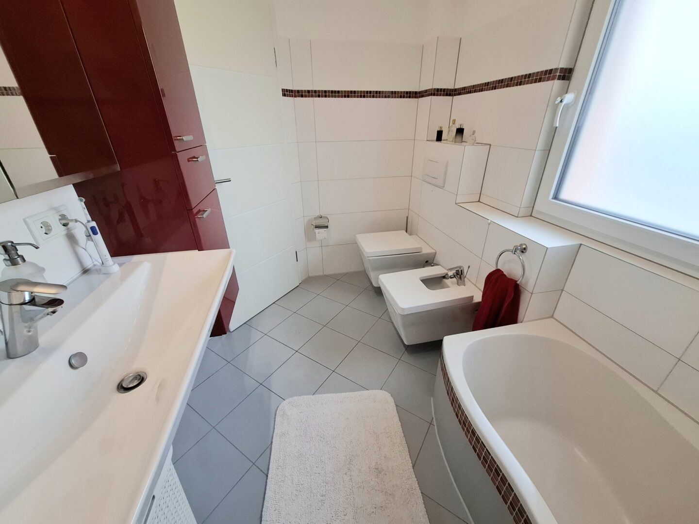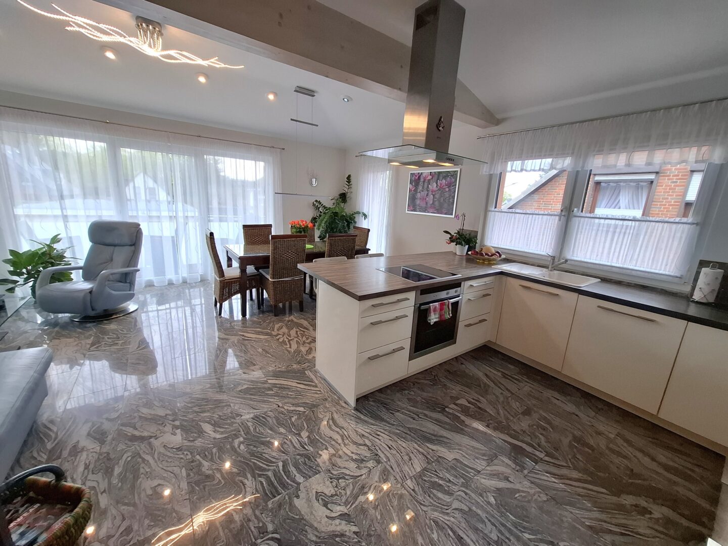 Auf einer Wohnfläche von ca. 147 m² verteilt sich ein durchdachtes Raumprogramm mit 4 Zimmern, das durch Licht und hochwertige Materialwahl besticht. Das Erdgeschoss und der 1. Stock ist mit hochwertigen Granitfliesen ausgestattet sowie Echtholzparkett und pflegeleichtem Laminatboden in Holzoptik in den Zimmern.