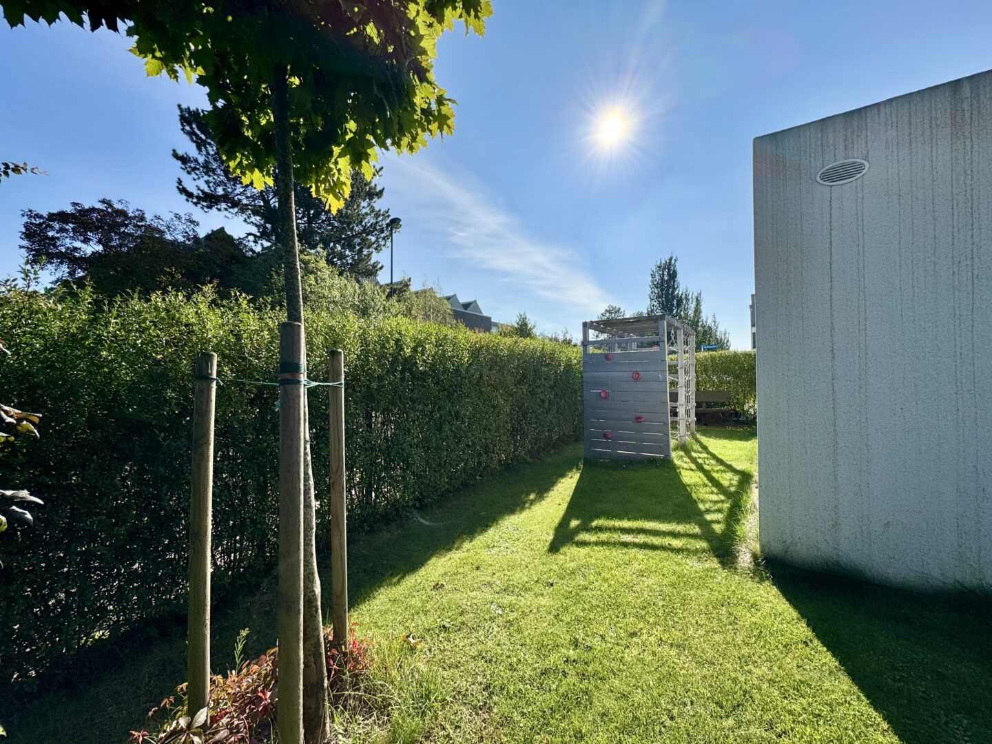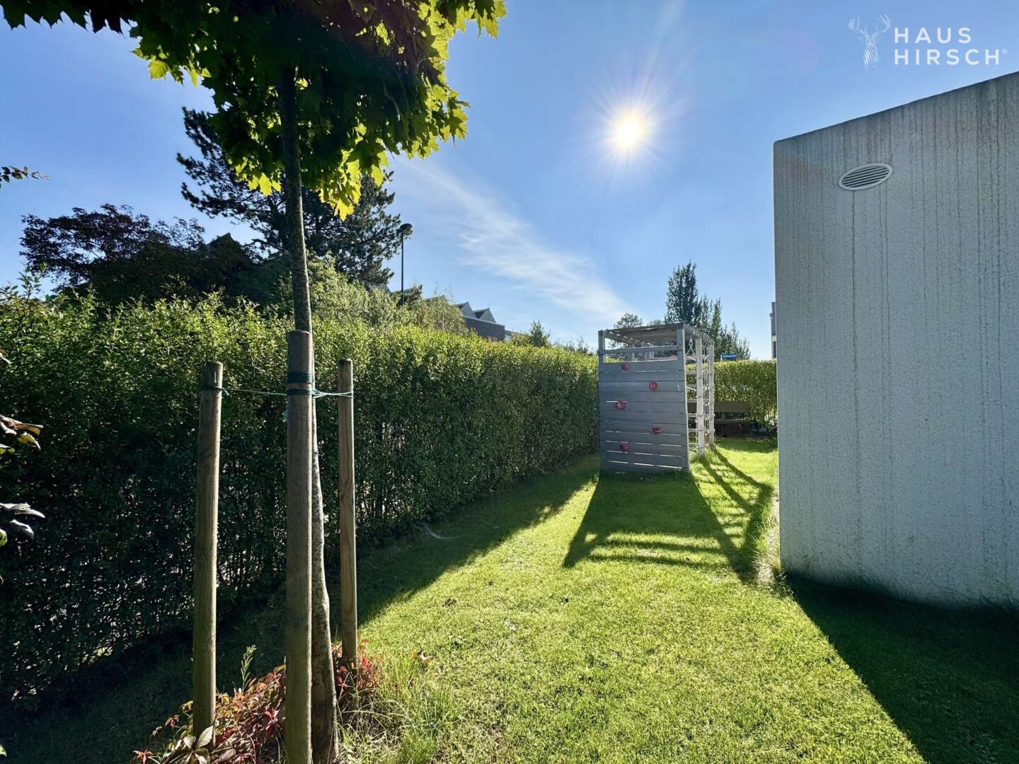 Ein echtes Highlight ist der private Garten mit Sondernutzungsrecht auf ca. 320 m² – eine grüne Oase, die weit über das Übliche hinausgeht. Hier genießen Sie Ihre Privatsphäre, gestalten großzügige Aufenthaltsbereiche und schaffen sich ein Refugium im Freien. Auf der überdachten Terrasse unter der Pergola lässt sich mit dezenten Sonnensegeln mühelos Schatten schaffen – für stilvolle Sommertage im eigenen Garten.