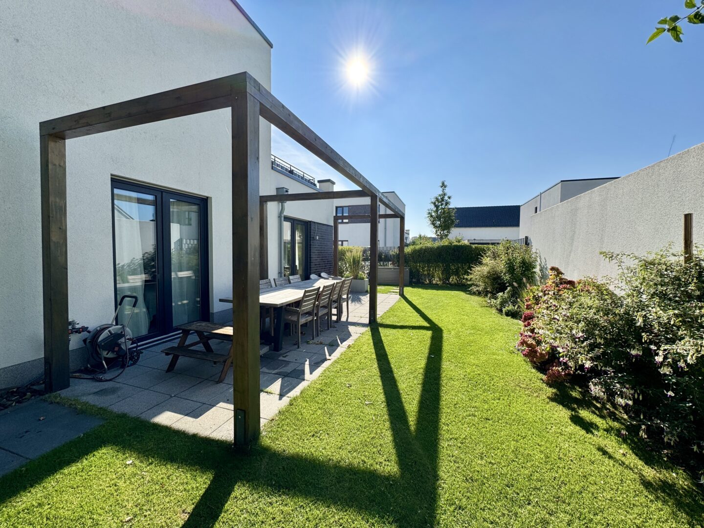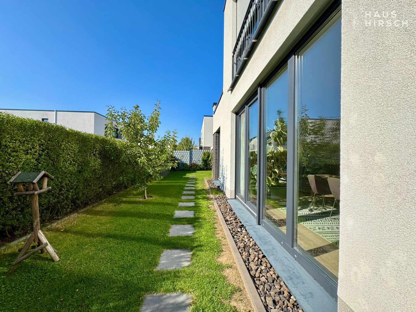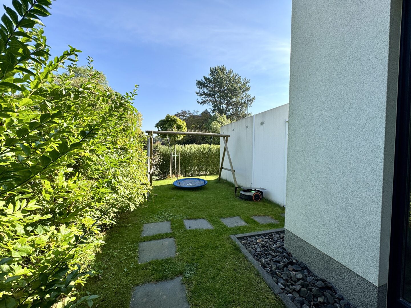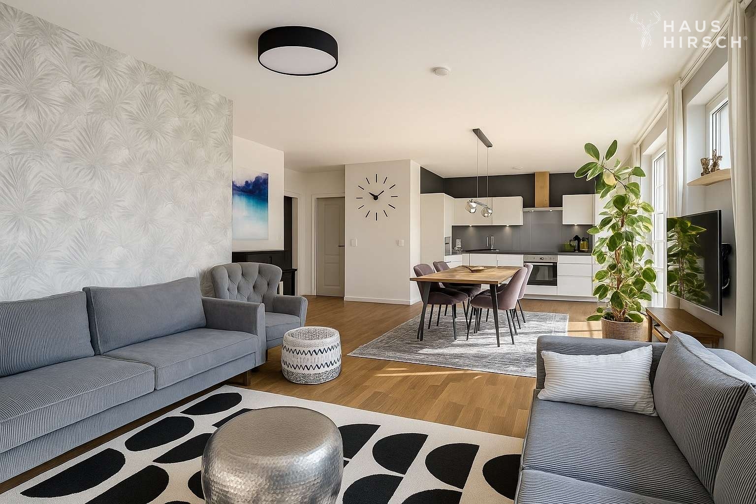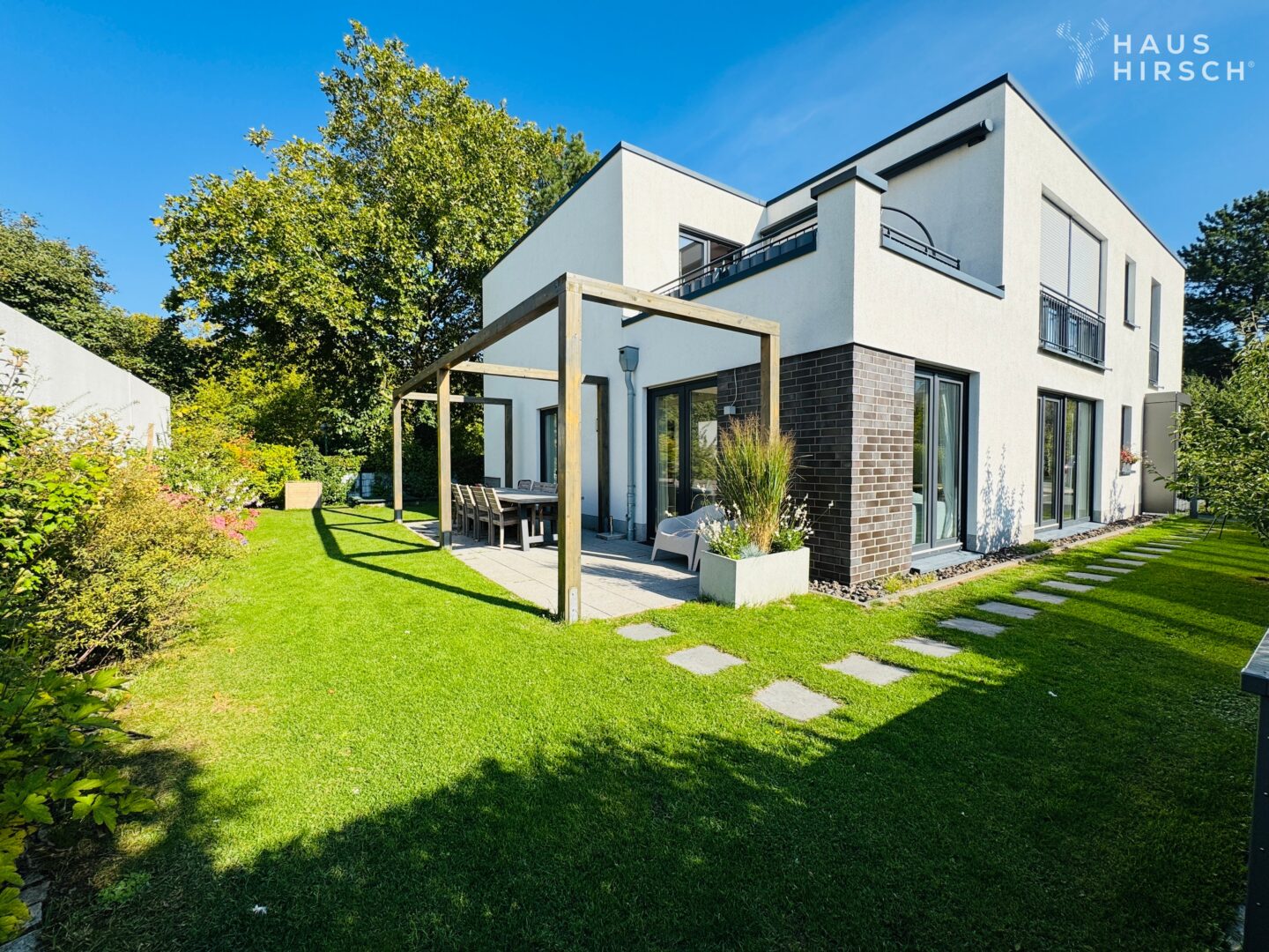 Zeitlos modern, perfekt geplant – und mit einem Garten, der schon beim ersten Schritt hinaus wie ein Versprechen wirkt: auf Ruhe, Weite und ein Zuhause mit Charakter.