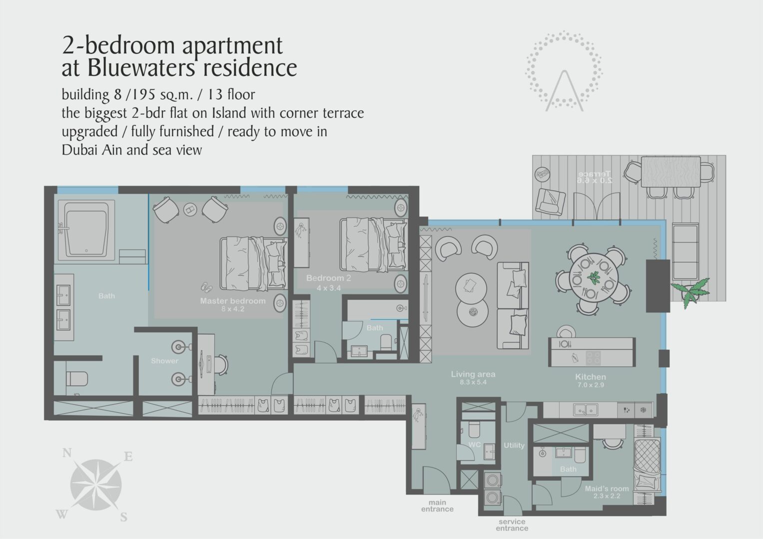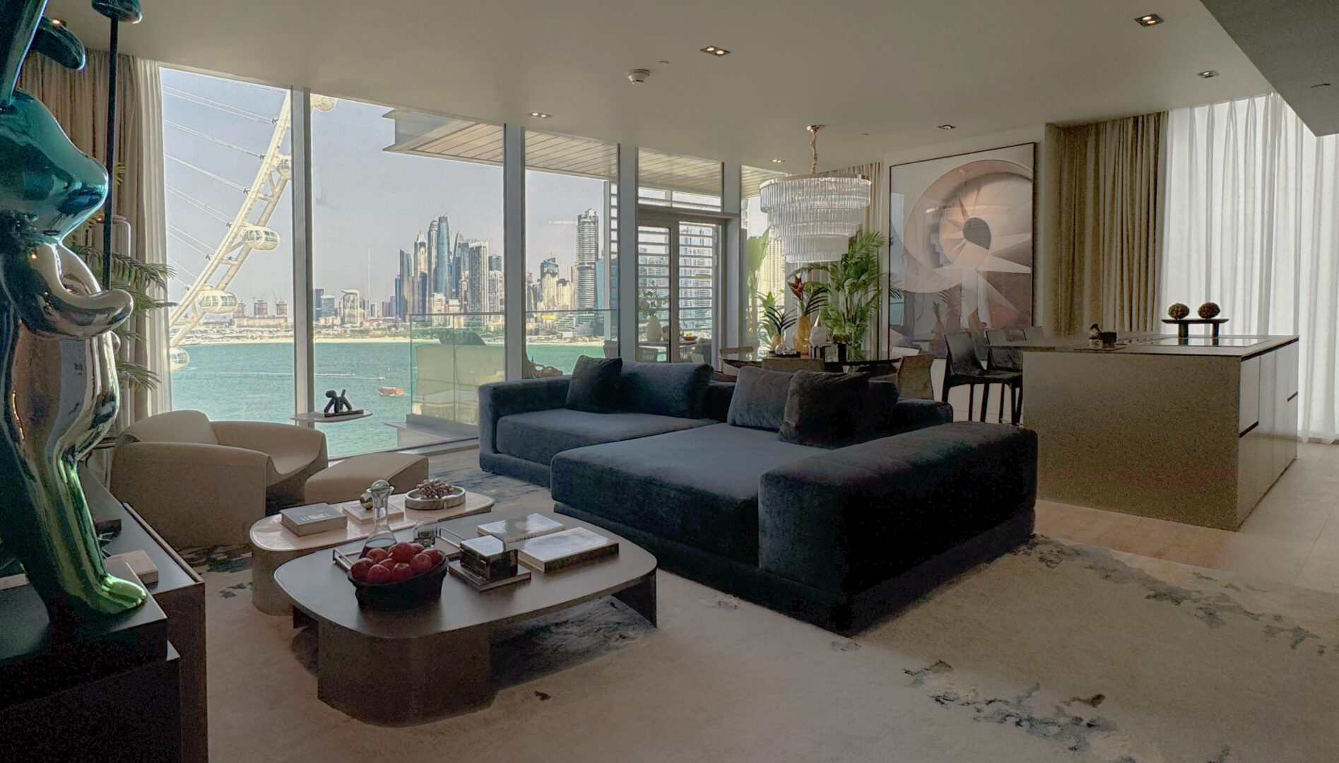 Willkommen zu Ihrem neuen Zuhause auf Bluewaters Island! Diese beeindruckende 3-Zimmer-Hochgeschosswohnung in den Bluewaters Residences 8 ist ein Juwel, das seinesgleichen sucht. Von der obersten Etage aus können Sie die atemberaubende Aussicht auf Ain, Palm und das Meer genießen. Das komplett möblierte und modernisierte Apartment verfügt sogar über ein Dienstmädchenzimmer für zusätzlichen Komfort. Ideal für Paare, Singles, Kapitalanleger und Familien, bietet diese einzigartige Wohnung alles, was das Herz begehrt. Willkommen in Ihrem neuen Zuhause auf Bluewaters Island!