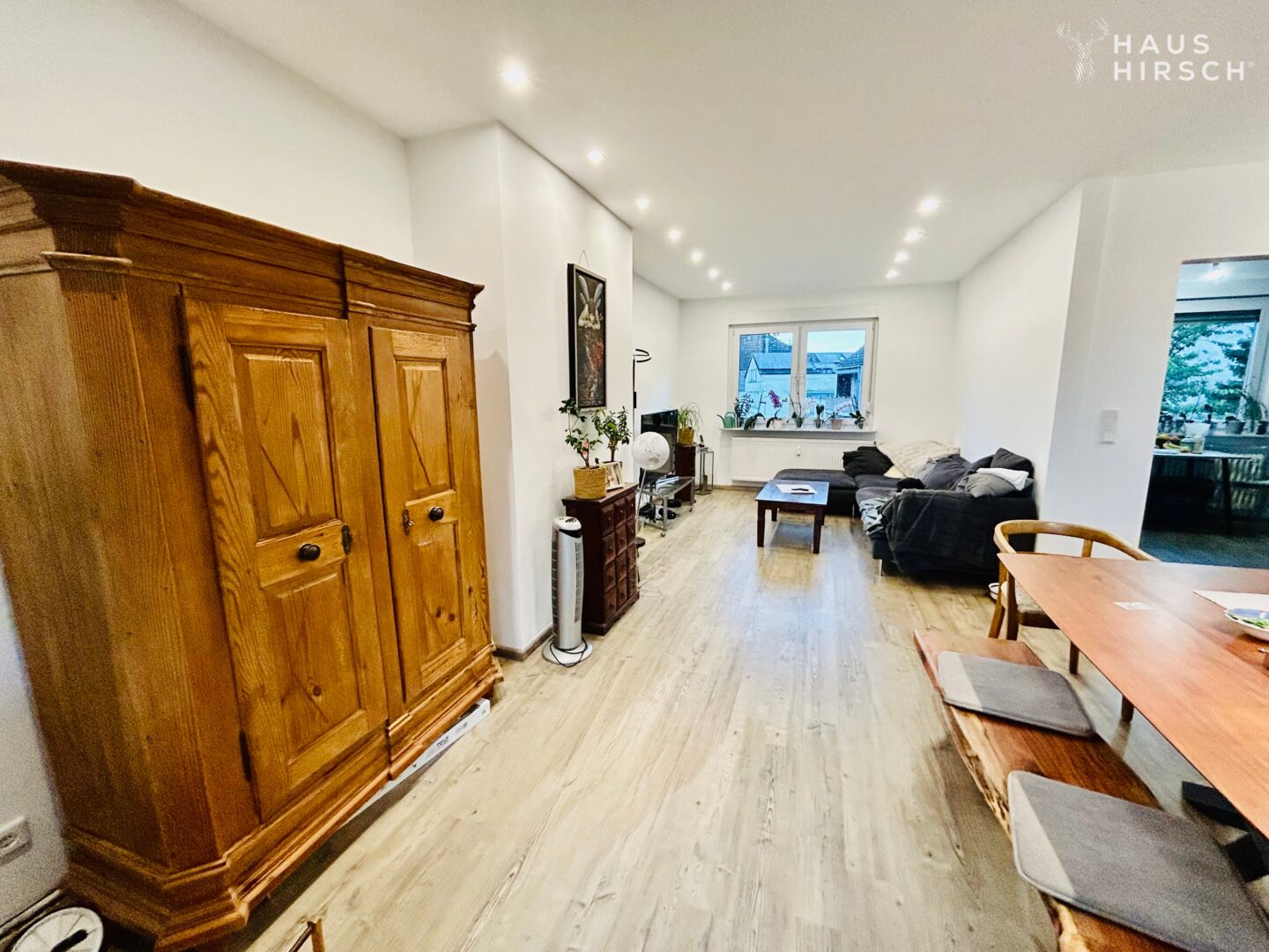 Der offene Grundriss schafft eine einladende Atmosphäre, perfekt zum Entspannen und Genießen. Vom Wohnbereich aus gelangen Sie direkt auf den Balkon, wo Sie die idyllische Umgebung und die frische Luft genießen können.