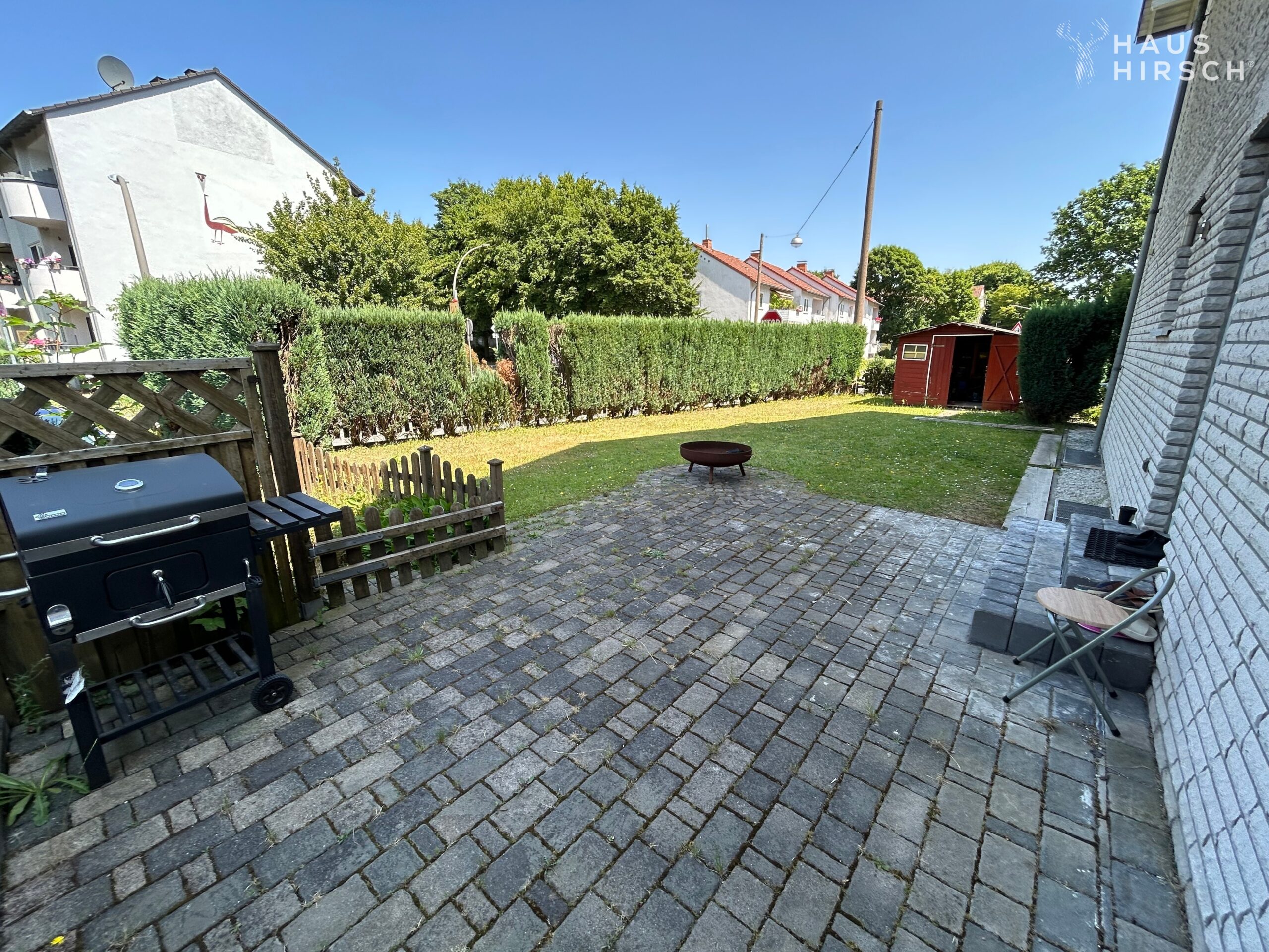 Der großzügige Wohnbereich überzeugt durch lichtdurchflutete Räume und große Fensterflächen, die eine freundliche, offene Atmosphäre schaffen. Die moderne Einbauküche mit integrierter Beleuchtung (ohne Elektrogeräte) fügt sich harmonisch in das Wohnkonzept ein. Von hier aus gelangen Sie direkt auf die sonnige Terrasse und in den liebevoll angelegten Garten, der per Sondernutzungsrecht ausschließlich zur Wohnung gehört. Ein hochwertiges Gartenhaus bietet zusätzlichen Stauraum.