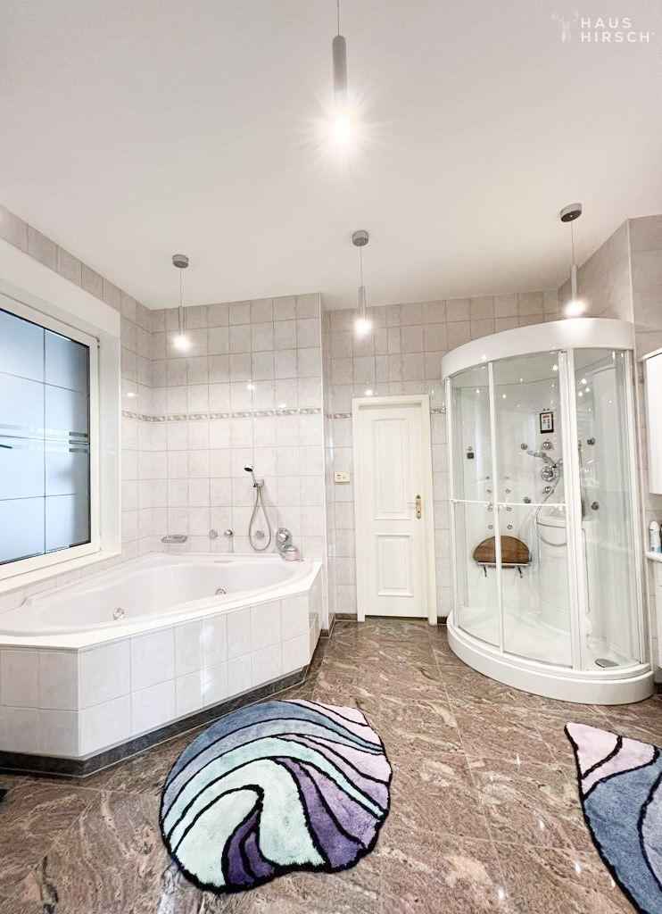 - 5 hochwertig ausgestattete Bäder inklusive einem exklusiven Wellnessbad mit Whirlwanne, Dampf- und Massagedusche