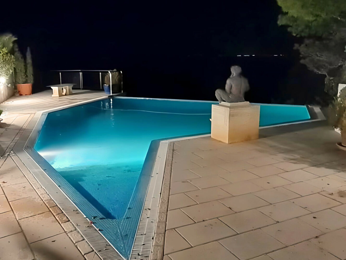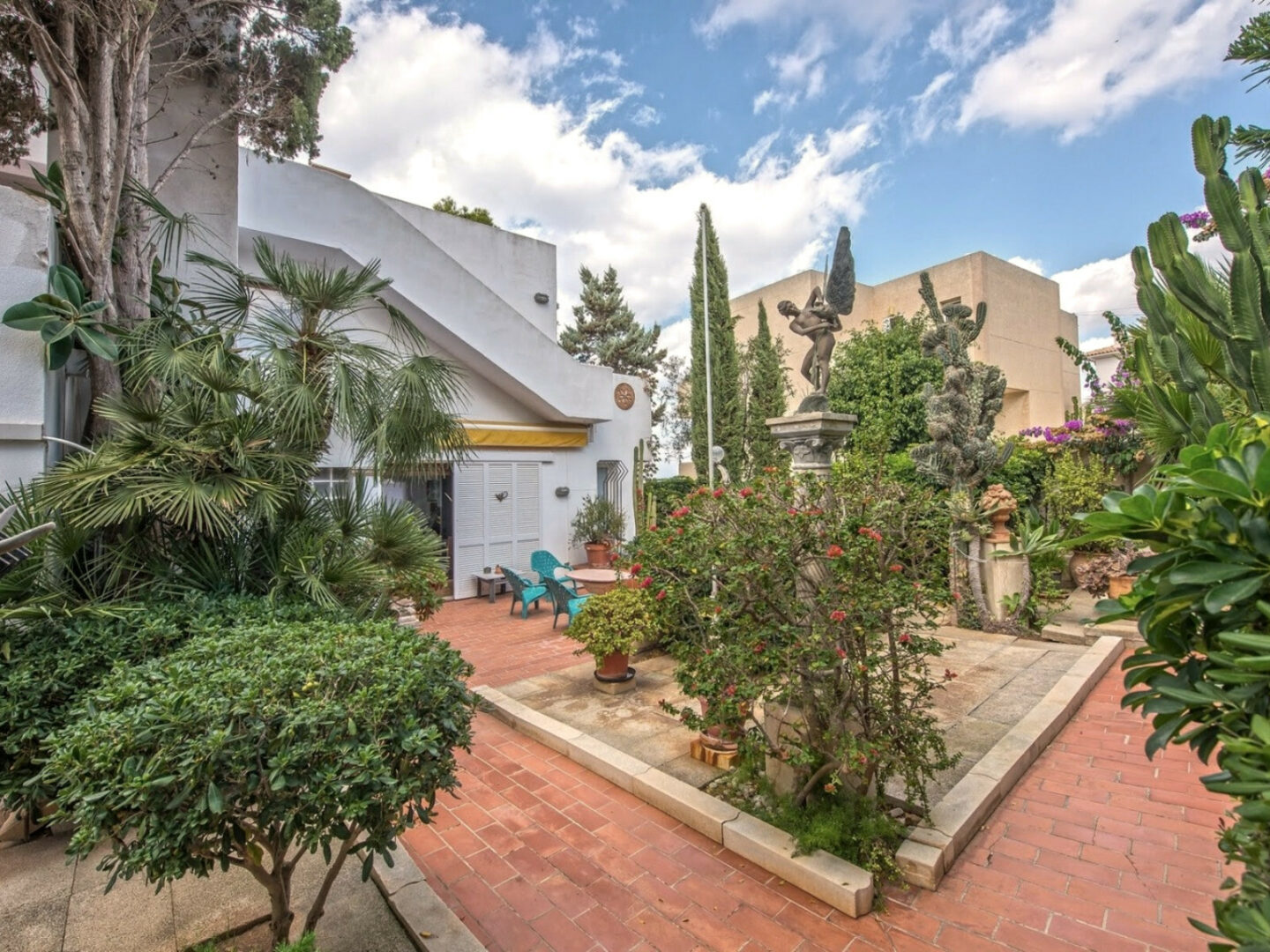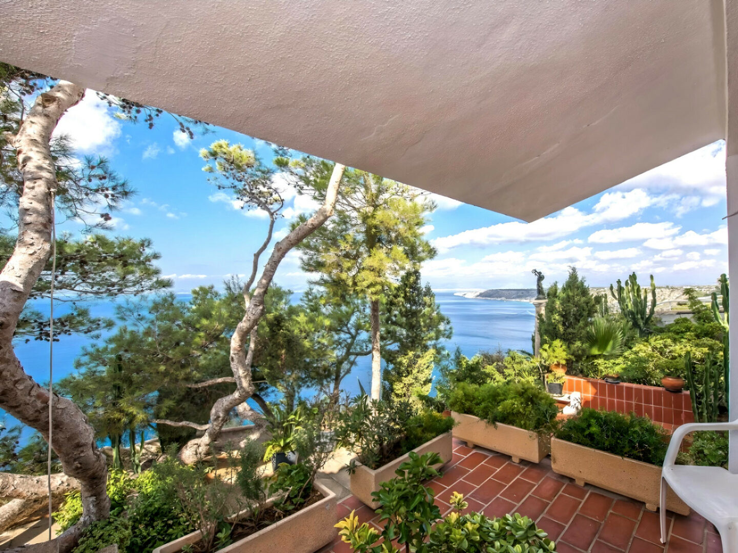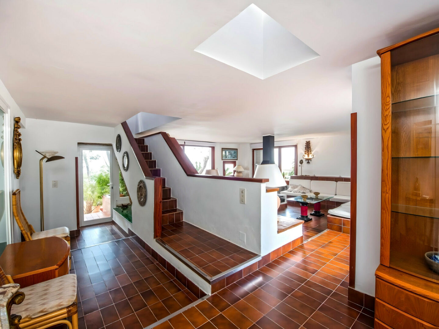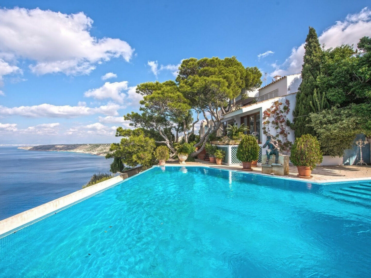 Im Außenbereich lädt ein liebevoll gestalteter Garten mit Skulpturen, mehrere Terrassen mit Meerblick und ein eindrucksvoller Infinity-Pool zum Entspannen ein. Außerdem verfügt die Villa über eine Garage und Außenstellplätze.