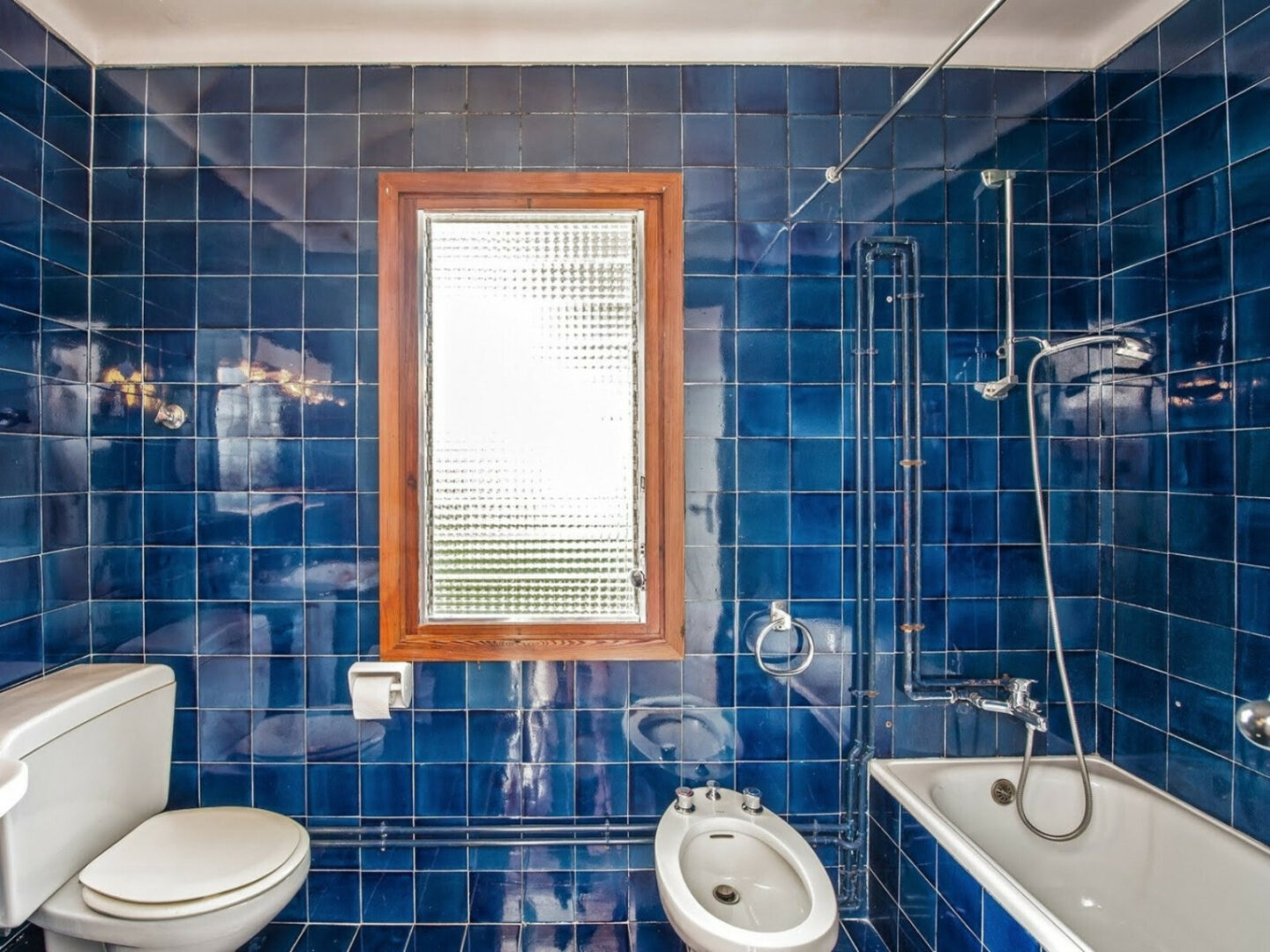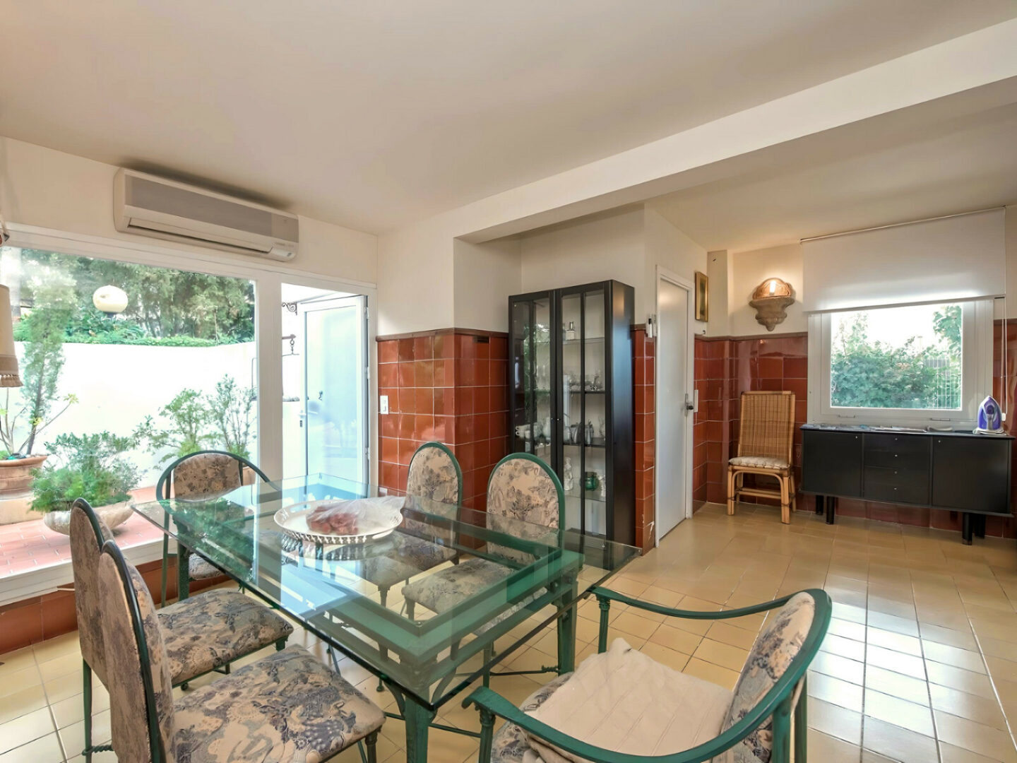 Die Ausstattung umfasst Klimaanlage (warm/kalt), Fliesenböden, Einbauschränke und doppelt verglaste Fenster. Das Haus wurde 1978 erbaut und bewahrt den modernen Architekturstil seiner Zeit mit hohem Modernisierungspotenzial.