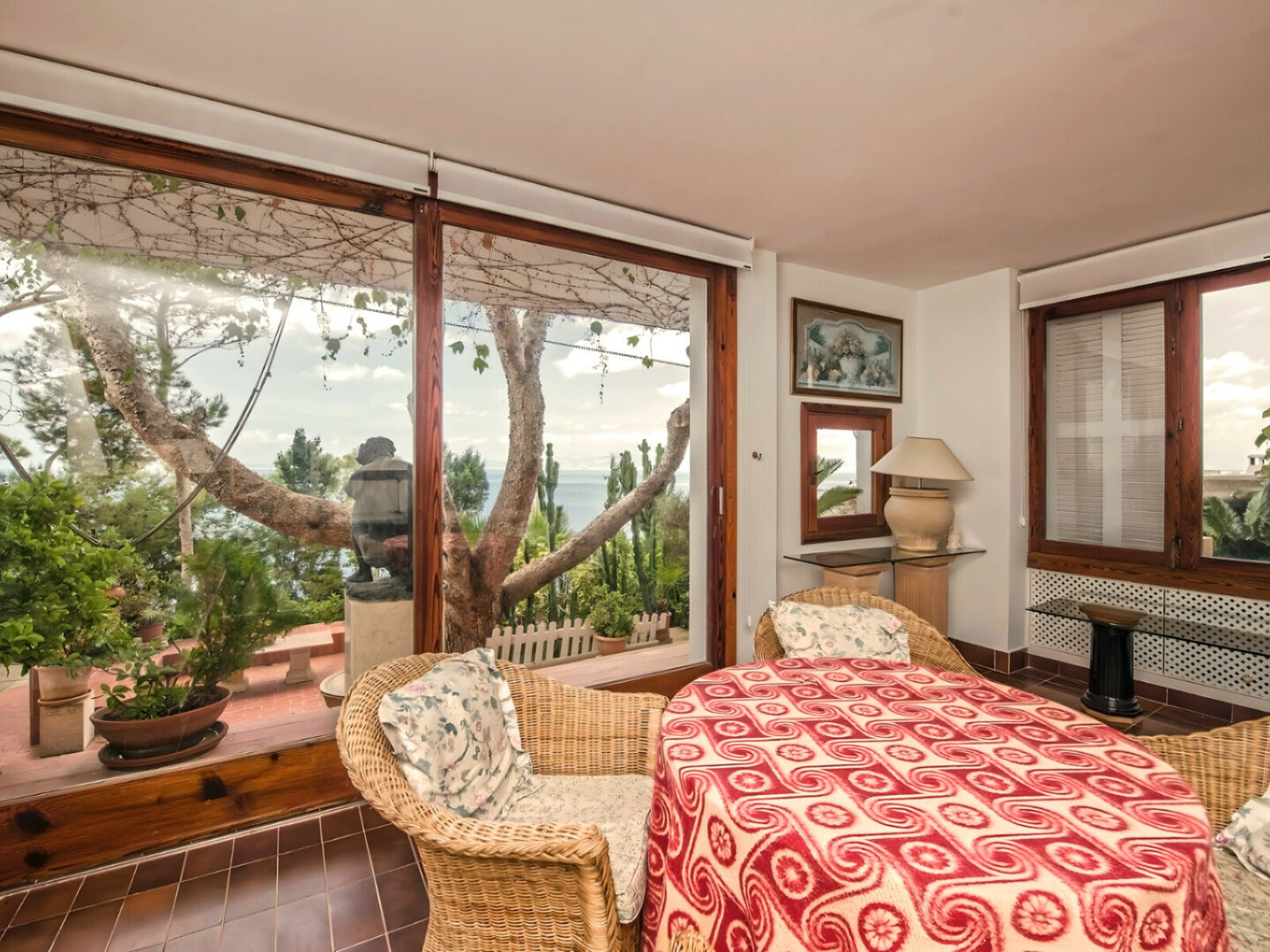 Diese helle, freistehende Villa thront auf den Klippen von Badia Gran und bietet einen atemberaubenden Blick auf die Bucht von Palma und das offene Meer. Die Immobilie vereint Großzügigkeit, Privatsphäre und eine einmalige Naturkulisse – ideal als Dauerwohnsitz oder Feriendomizil.