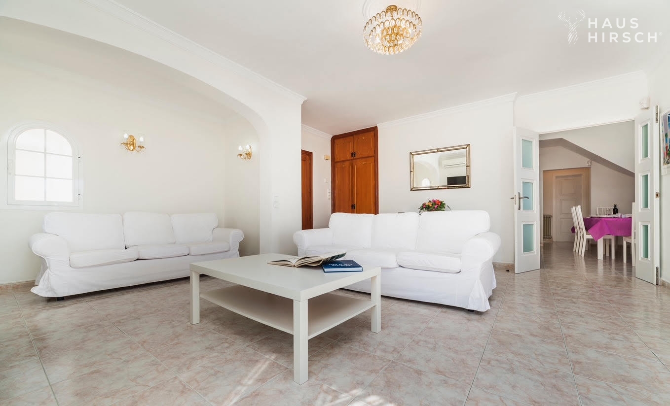 Der weitläufige Garten der Villa ist mit Olivenbäumen, Johannisbrotbäumen, Mandelbäumen, Zitrusbäumen und einer Vielzahl von Zierpflanzen und Blumen geschmückt und schafft eine private und idyllische Atmosphäre. Zudem verfügt die Villa über ein separates Gästeapartment, ideal für Besucher.