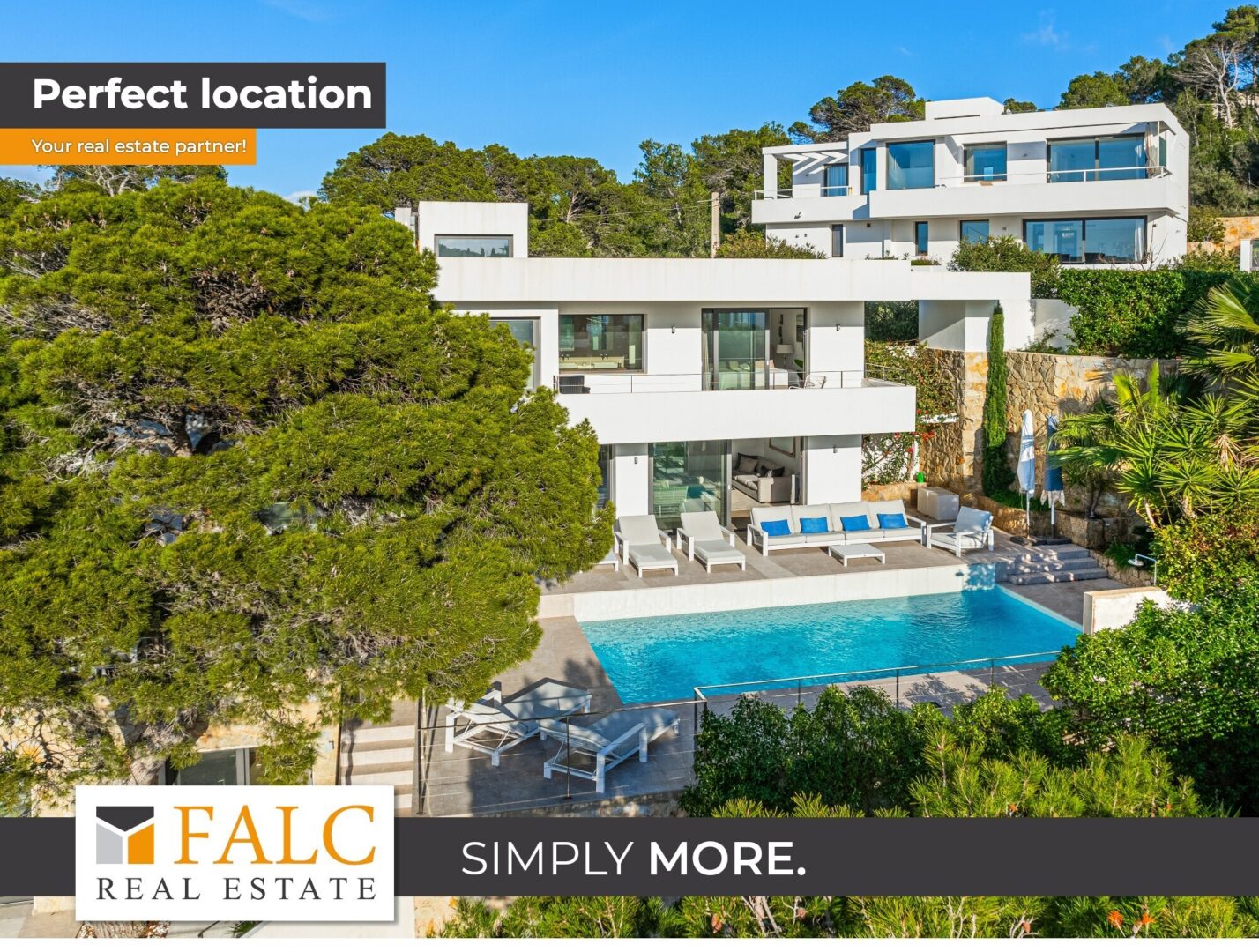 Diese exklusive Villa, gelegen auf der Halbinsel La Mola, besticht durch Ihre herausragende Lage und den spektakulären Blick auf das offene Meer. Auf einem 580 m² großen Grundstück wurde die Liegenschaft 2017 kernsaniert und vereint auf stilvolle Weise modernen Luxus mit mediterranem Charme. Der einladende Eingangsbereich führt in das erste Obergeschoss, in dem sich das großzügige Masterschlafzimmer mit unverbaubarem Panoramablick auf das Meer und einem eleganten Bad en-Suite nebst Balkon befindet. Ein weiteres geschmackvoll gestaltetes Schlafzimmer ebenfalls mit Bad en-Suite und privatem Balkon rundet die obere Etage ab. Im Erdgeschoss präsentiert sich der offene Wohn-, Ess- und Kochbereich. Diese lichtdurchflutete Ebene gewährt ebenfalls atemberaubende Blick auf das Mittelmeer. Die großzügige Küche mit Kochinsel fügt sich harmonisch in den Essbereich ein, während der angrenzende Wohnbereich eine perfekte Oase zum Entspannen bietet. Ein weiteres Schlafzimmer mit Bad en-Suite, ein Gäste-WC, ein praktischen Hauswirtschaftsraum und ein charmanter mediterraner Patio vervollständigen diese Etage. Die ca. 200 m² große Terrasse umfasst einen beheizbaren 30 m² großen Pool, zahlreiche Liegeflächen, eine gemütliche Lounge-Ecke sowie einen großzügigen Ess- und Grillbereich. Eine stattliche Pinie sorgt für angenehmen Schatten, während die Süd-/ Südwestausrichtung das ganzen Jahr über Sonne garantiert. Der spektakuläre Sonnenuntergang rundet das Immobilienerlebnis perfekt ab. Im Untergeschoss befinden sich weitere ca. 50 m² große Räumlichkeiten mit Duschbadezimmer und eigener Terrasse, die individuell als Sauna, Fitnessraum oder ähnliches genutzt werden können. Das Anwesen ist mit modernster Haustechnik ausgestattet, darunter Fußbodenheizung, Klimaanlagen, eine Wärmepumpe und eine Alarmanlage. Die ruhige Lage in einer Sackgasse gewährleistet beste Privatsphäre, Ruhe und absolute Erholung.