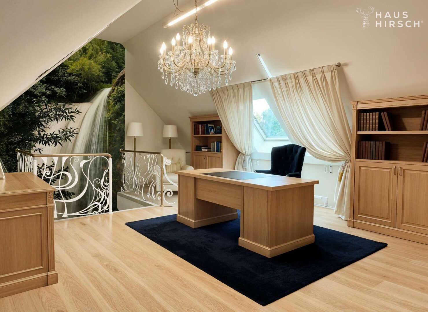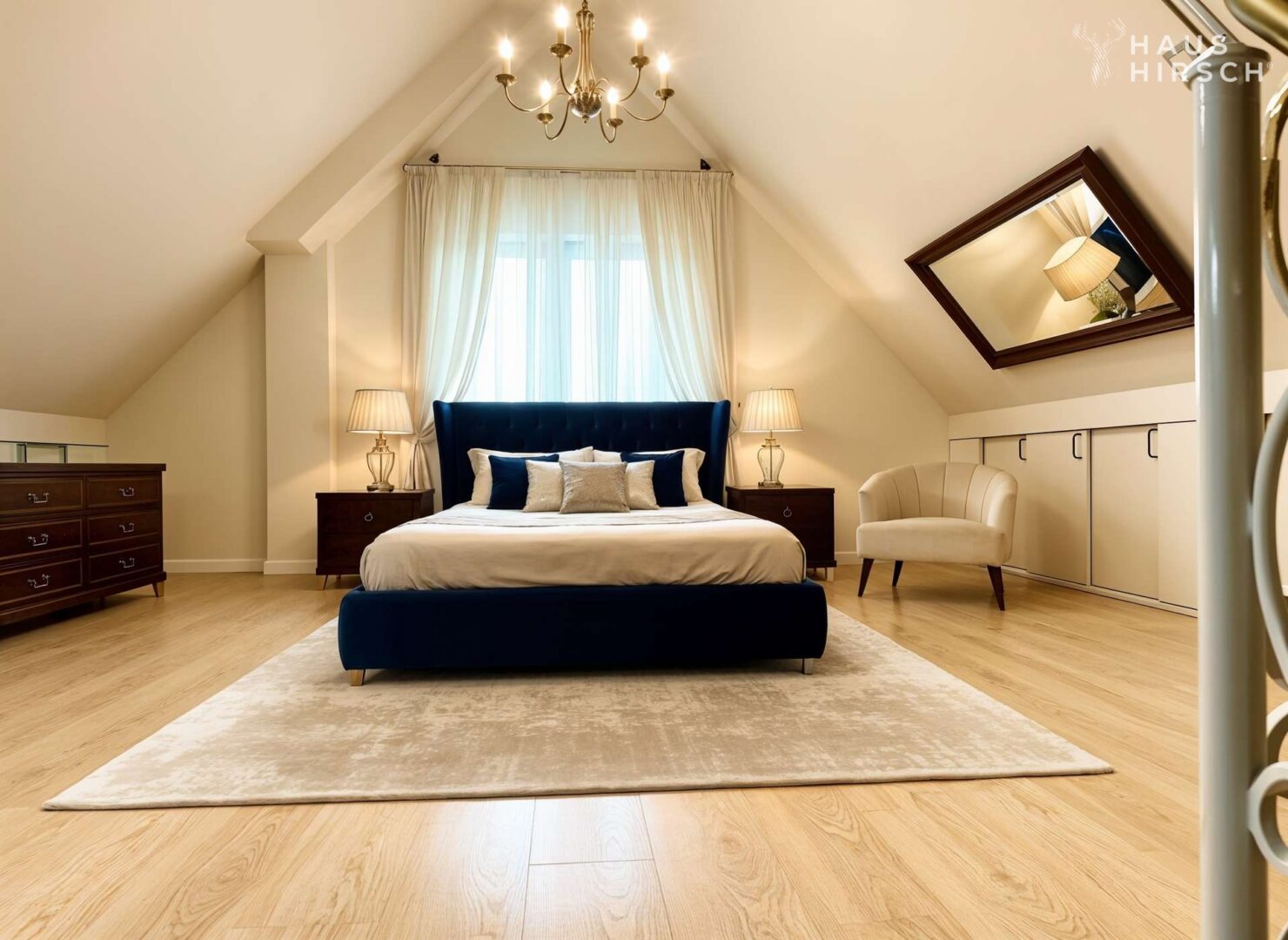 Die hochwertige Ausstattung setzt sich in der Küche fort: Hier treffen Marken-Geräte auf modernes Design. Ein Induktionsherd, ein hochgestellter Backofen und ein Panorama-Sicherheitsglas am Kochfeld machen das Kochen zum Vergnügen, während die Siemens „Silent“-Spülmaschine für Ruhe im offenen Wohnbereich sorgt.