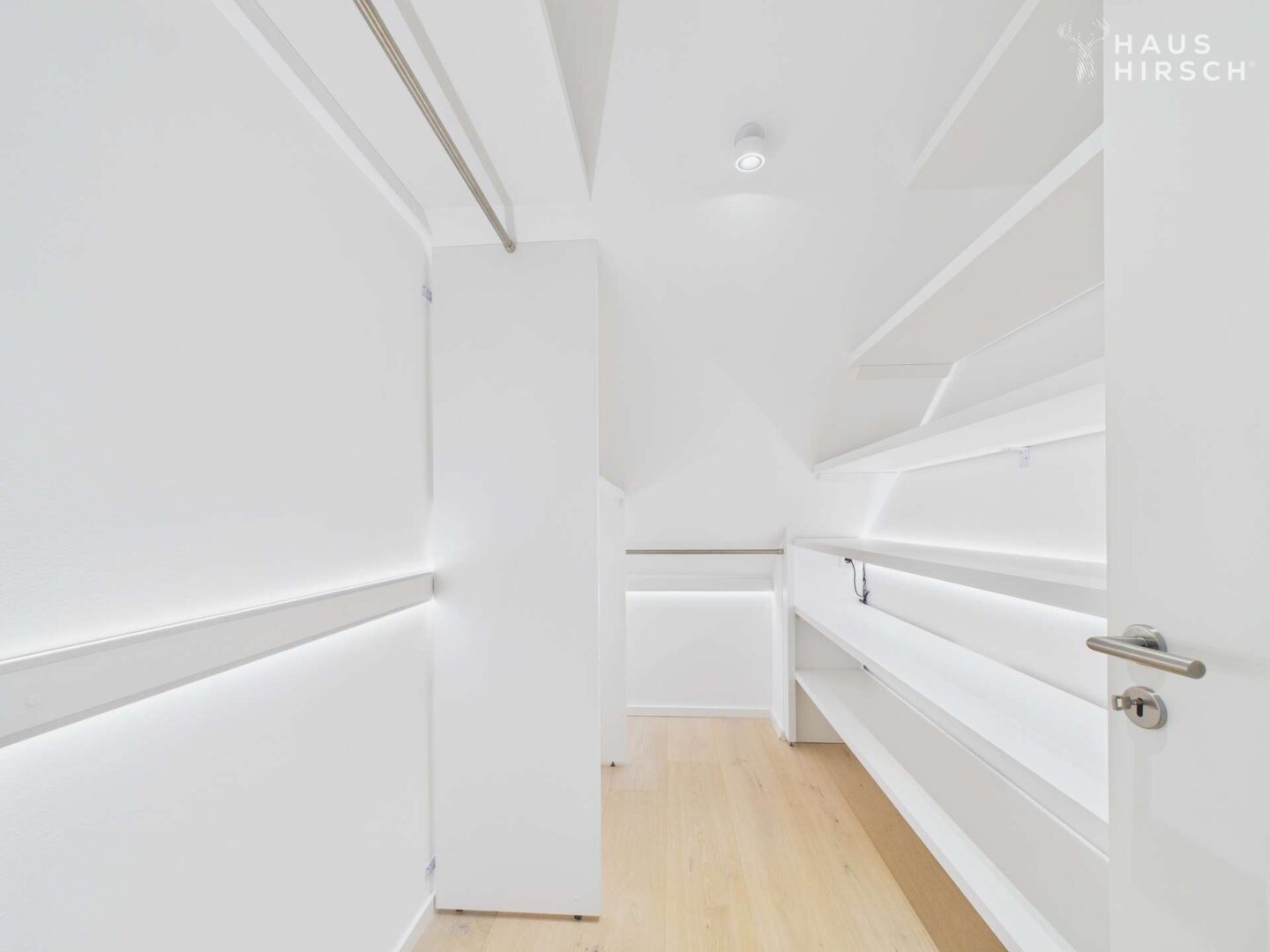 Stauraum & Licht: Maßgefertigte, deckenhohe Einbauschränke im gesamten Haus. Neue, moderne LED-Deckenspots im Obergeschoss.