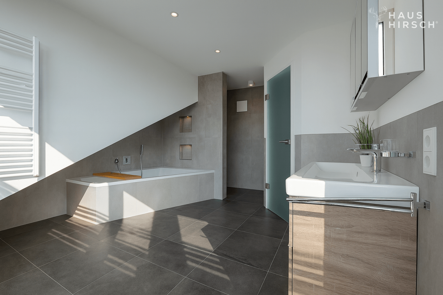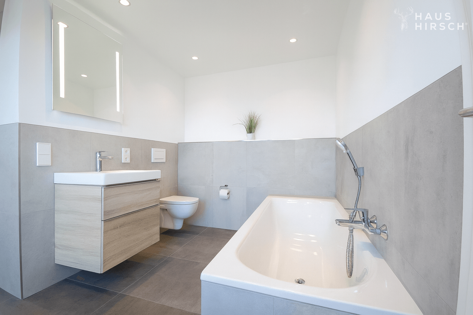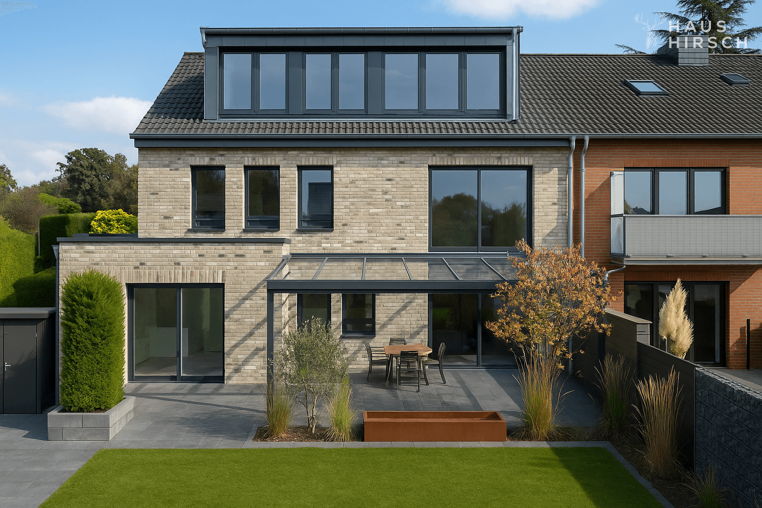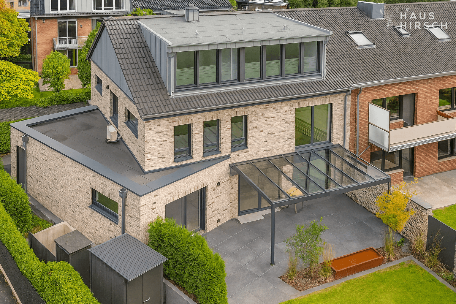 Die Einliegerwohnung bietet zusätzlich ca. 52 m² Wohnfläche mit einer hellen Wohnküche, einem Badezimmer und einem großzügigen Schlafzimmer im Souterrain. Eine eigene Terrasse sorgt für Privatsphäre. Derzeit ist die Einheit für 715 € kalt vermietet – sie eignet sich aber ebenso perfekt als Wohnbereich für Großeltern, erwachsene Kinder oder Gäste und macht das Haus zu einer idealen Lösung für ein modernes Mehrgenerationenhaus.